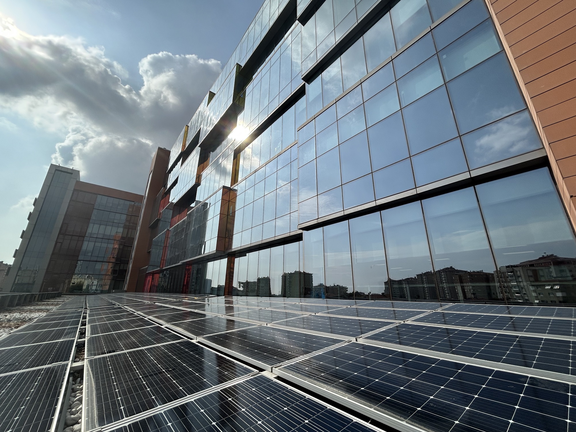 Located on a 67,000 m2 area in Manisa Alaşehir, our Solar Energy Power Plant (SEP), installed with 13,000 panels, along with the Solar Energy Plant on the roofs of our campus buildings and our Wind Energy Power Plants (WEP), meets the electricity needs of our university through renewable energy sources with approximately zero carbon emissions."