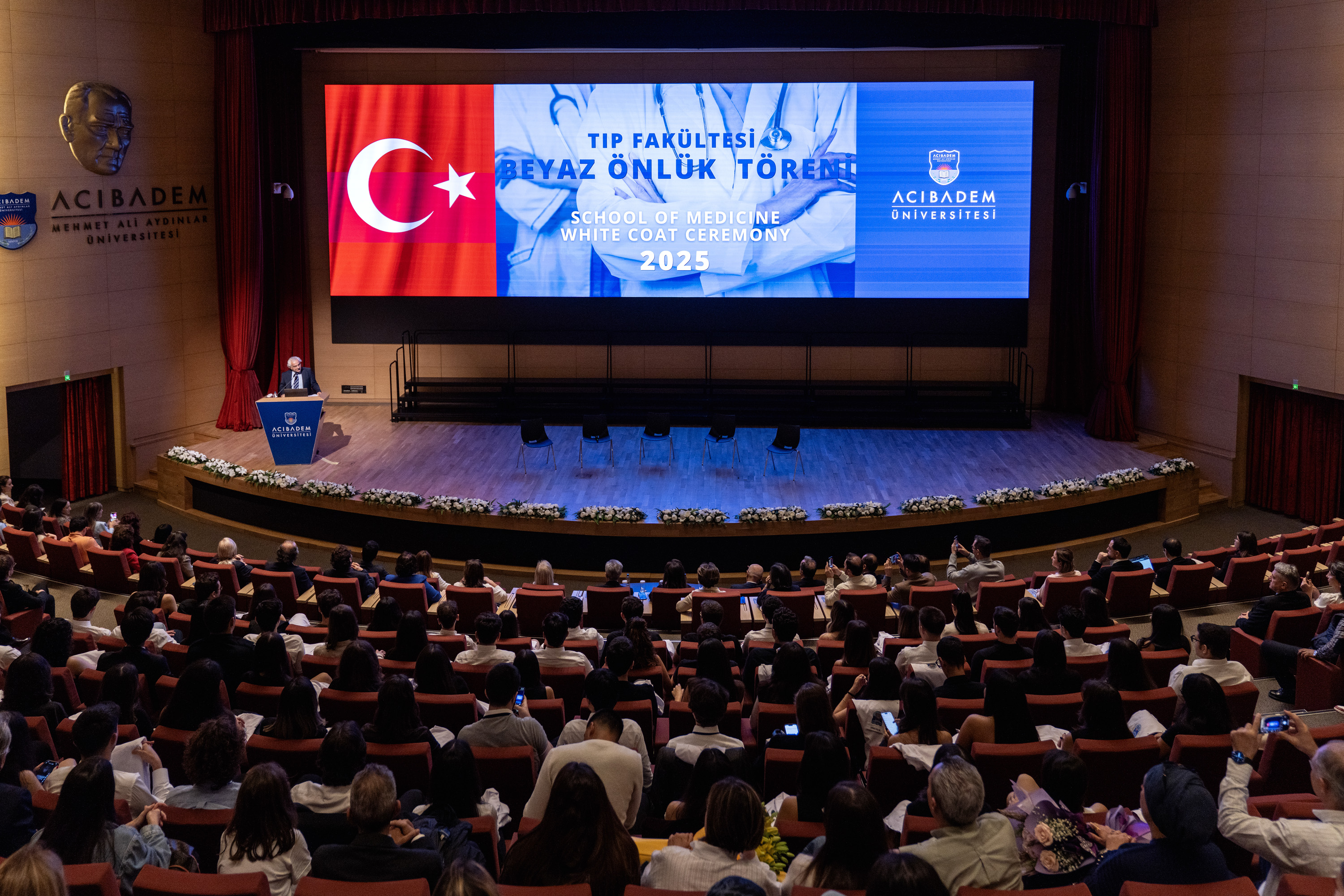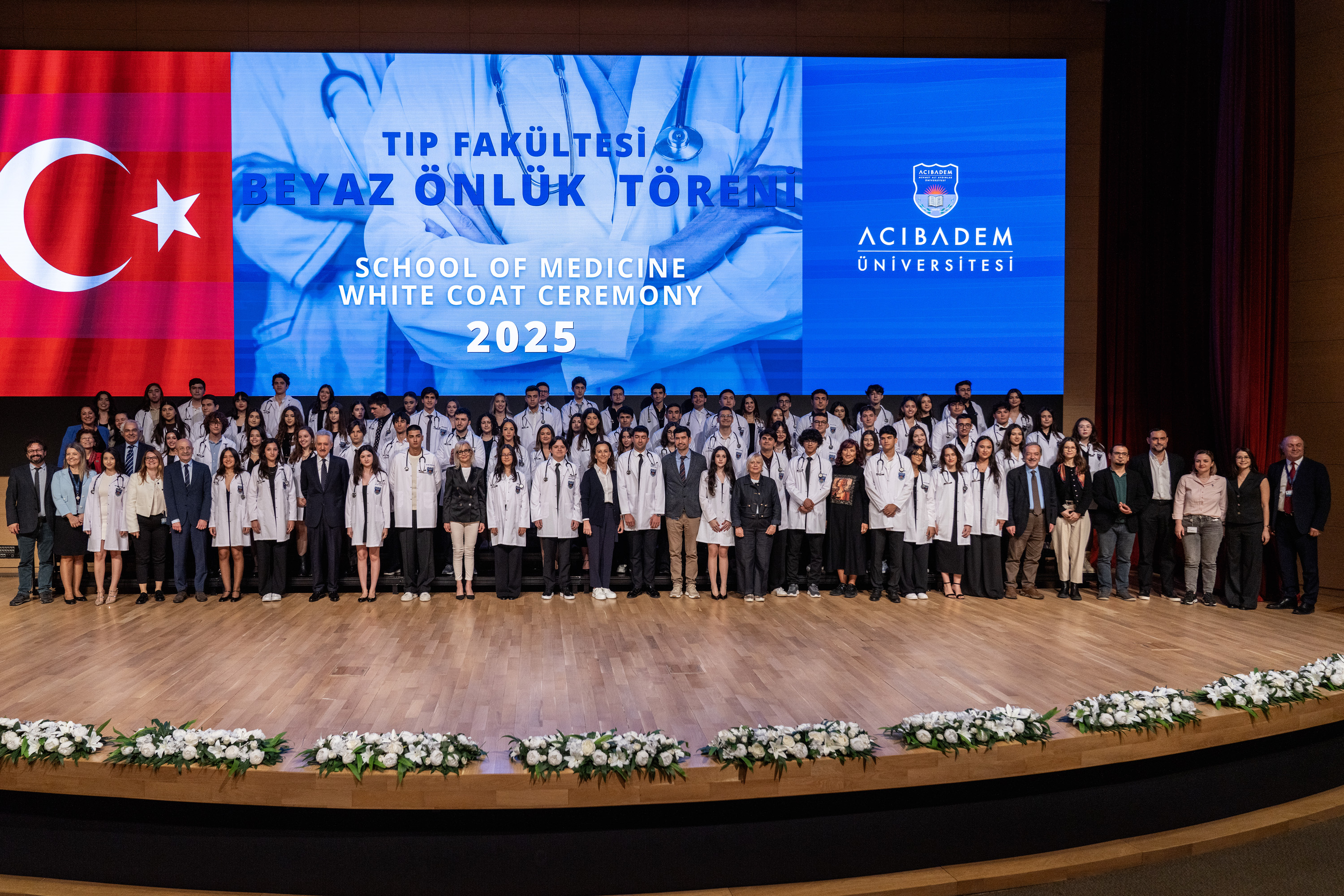 The traditional White Coat Ceremony of Acıbadem University School of Medicine was held on October 22, 2025, in the conference hall. New medical students took their first steps into the journey of medicine by donning their white coats, embroidered with their names and the university emblem, and receiving their stethoscopes from the Dean of the School of Medicine, Prof. Dr. Nadi Bakırcı.