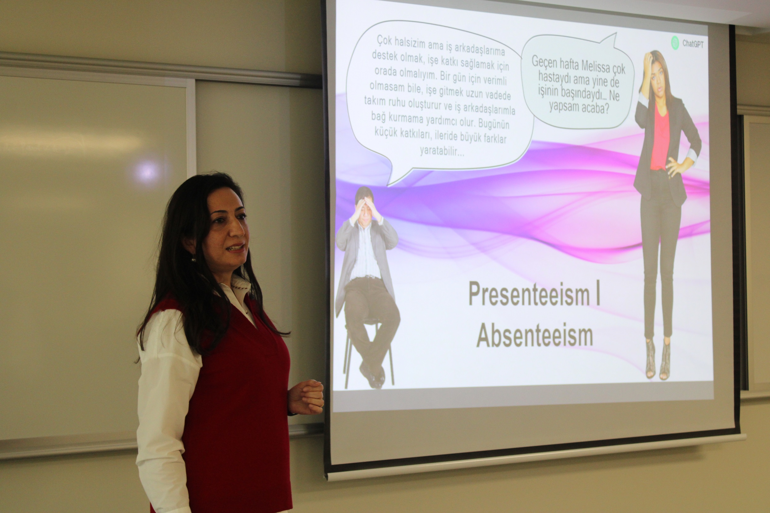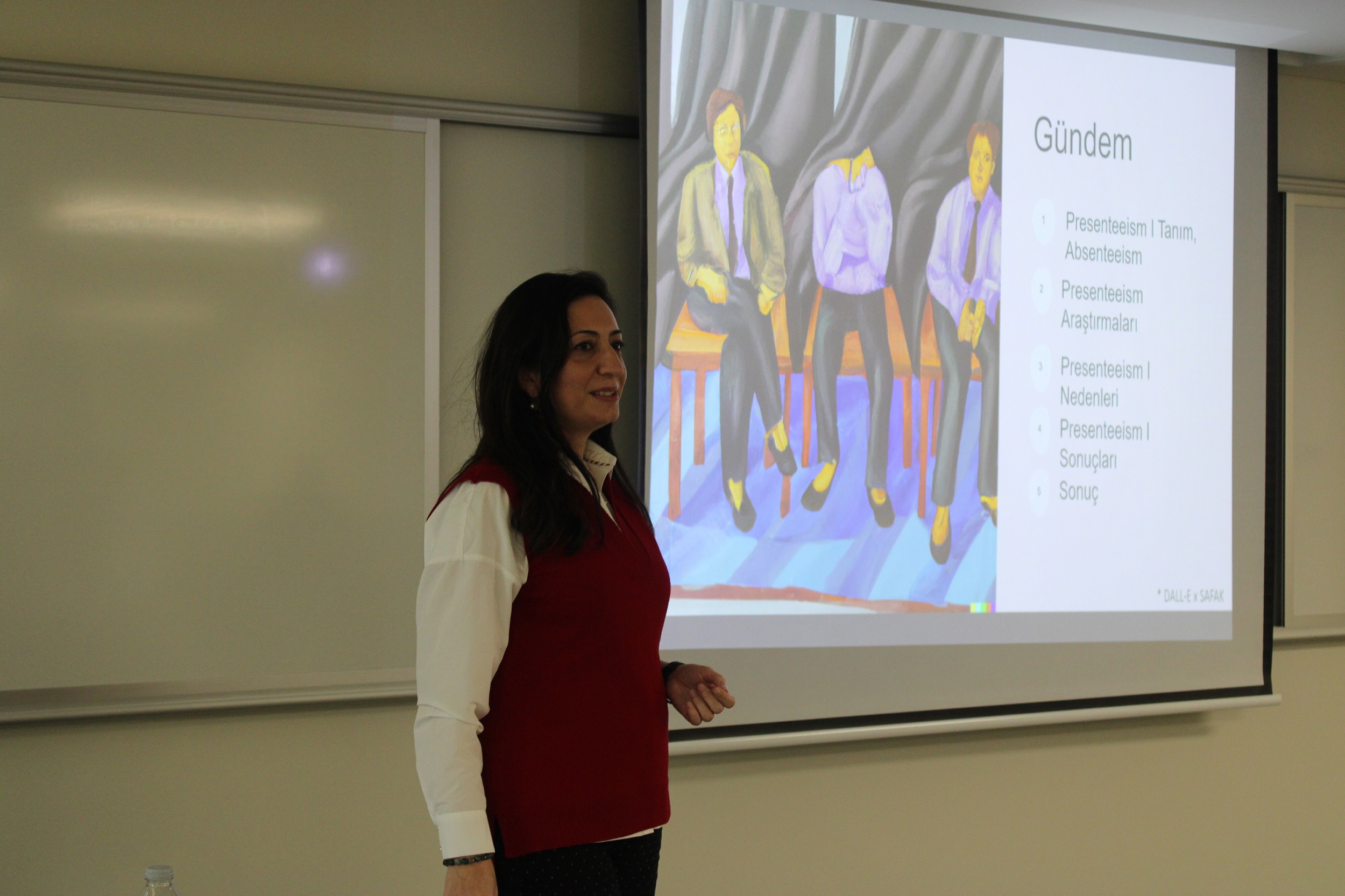 The inaugural seminar of the Social Sciences Institute of Acıbadem University, titled "To Be or Not to Be at the Workplace: Presenteeism," took place at our university on December 12, 2023. The event focused on the concept of 'Presenteeism,' a phenomenon where individuals who are not in a condition to work are obliged to be present at the workplace, negatively impacting individual behaviors. Assist. Prof. Şafak Öz Aktepe, a faculty member of the Faculty of Humanities and Social Sciences, Department of Psychology, was the speaker at the event. Discussions encompassed factors influencing employees' decisions regarding presenteeism, the effects of presenteeism behavior on employees and organizations, and contemporary approaches to the concept of presenteeism. It was highlighted that job security, a healthy organizational culture, an open communication climate, and policies and practices that value employees are prominent, robust structural resources in managing presenteeism. The seminar, attended by 20 people, ended after the question-and-answer session.