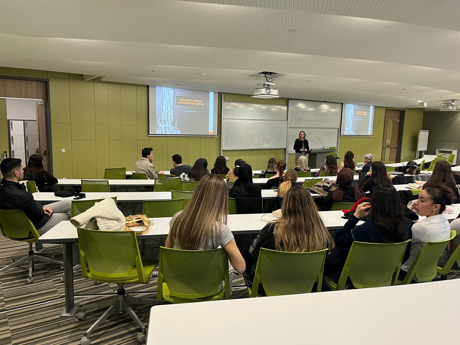 As part of the program, Prof. Dr. Esra Uğur, a faculty member of the Department of Nursing, delivered a presentation titled "My Academic Roadmap After Graduation." The presentation thoroughly addressed the competencies required for an academic career, the application processes, and key considerations to keep in mind throughout.