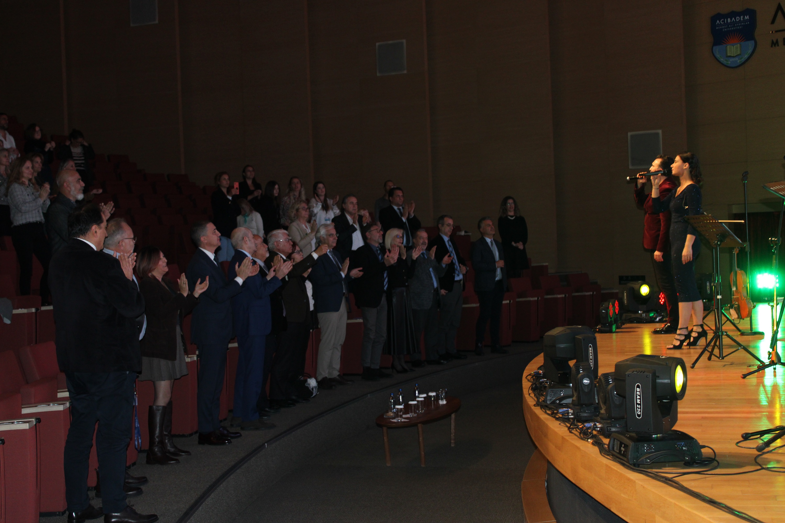 As part of the events organized by Acıbadem University for the 100th anniversary of our Republic, a concert, exhibition, and reception were held on November 20, 2023. The foyer hosted an exhibition featuring rare photographs of Atatürk, creating emotional moments for university staff and students in attendance. Following the well-received exhibition, attendees were treated to food and drinks before the concert. The musicians in the concert included Berk Özbek, a tenor from the Istanbul State Opera and Ballet, and Assoc. Prof. Tuğçem Aslan Kar, a soprano from the ITU Turkish Music State Conservatory. They were accompanied by Assoc. Prof. Alper Akgül from Kocaeli University on the piano, Dr. Mehmet Ali Açıksöz on the trumpet, Cüneyt Saka on the bass, and Recep Kaan Kar on the guitar. The concert, featuring a repertoire spanning from world music to Turkish music and including many classics beloved by Atatürk, concluded with patriotic songs sung by all of us.