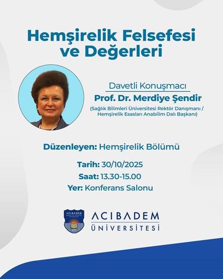 The “Nursing Philosophy and Values” conference, organized by the Social and Scientific Activities Commission of the Department of Nursing, Faculty of Health Sciences, Acıbadem Mehmet Ali Aydınlar University, was held on October 30, 2025, at the Acıbadem Mehmet Ali Aydınlar University Conference Hall.