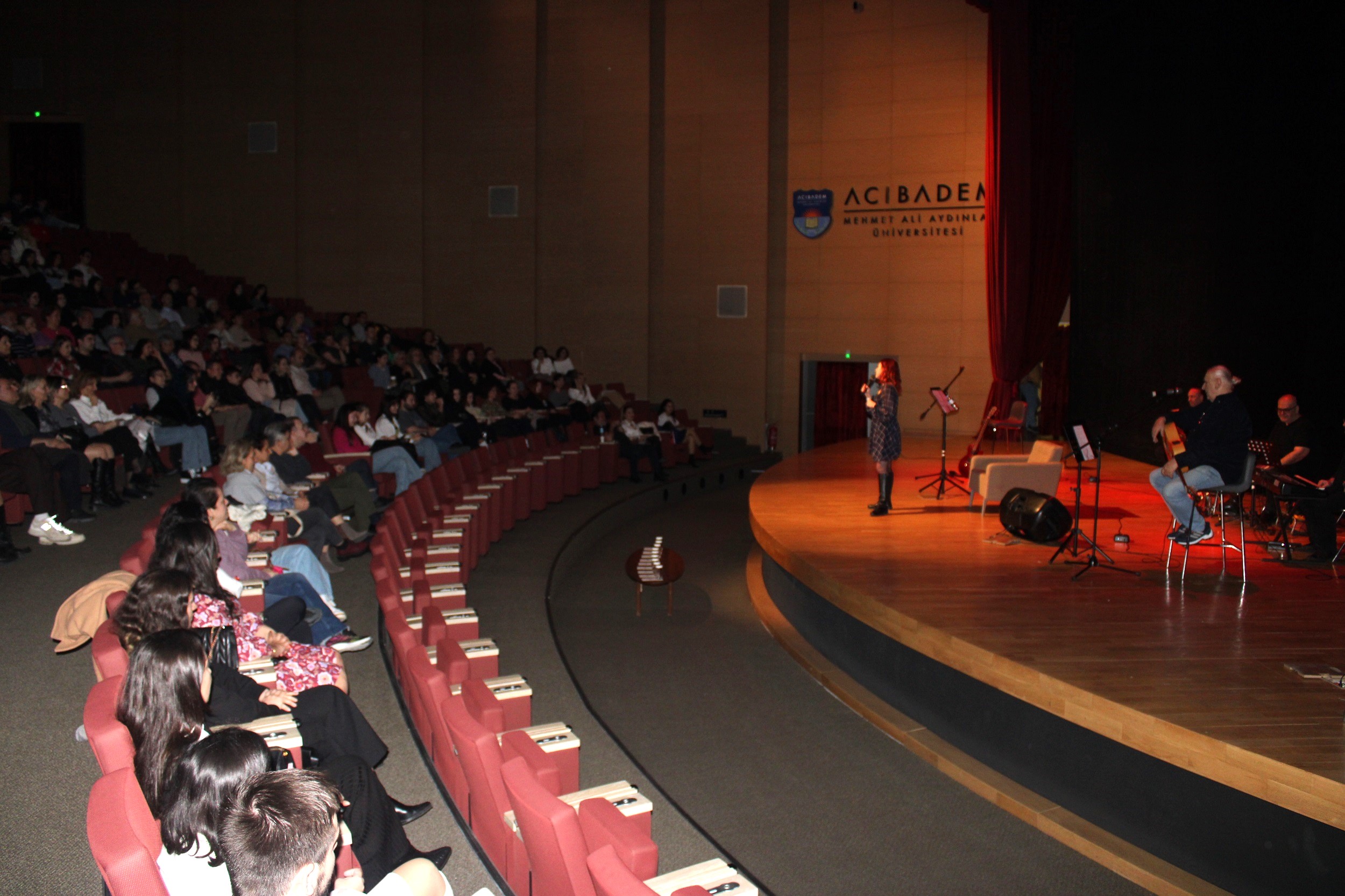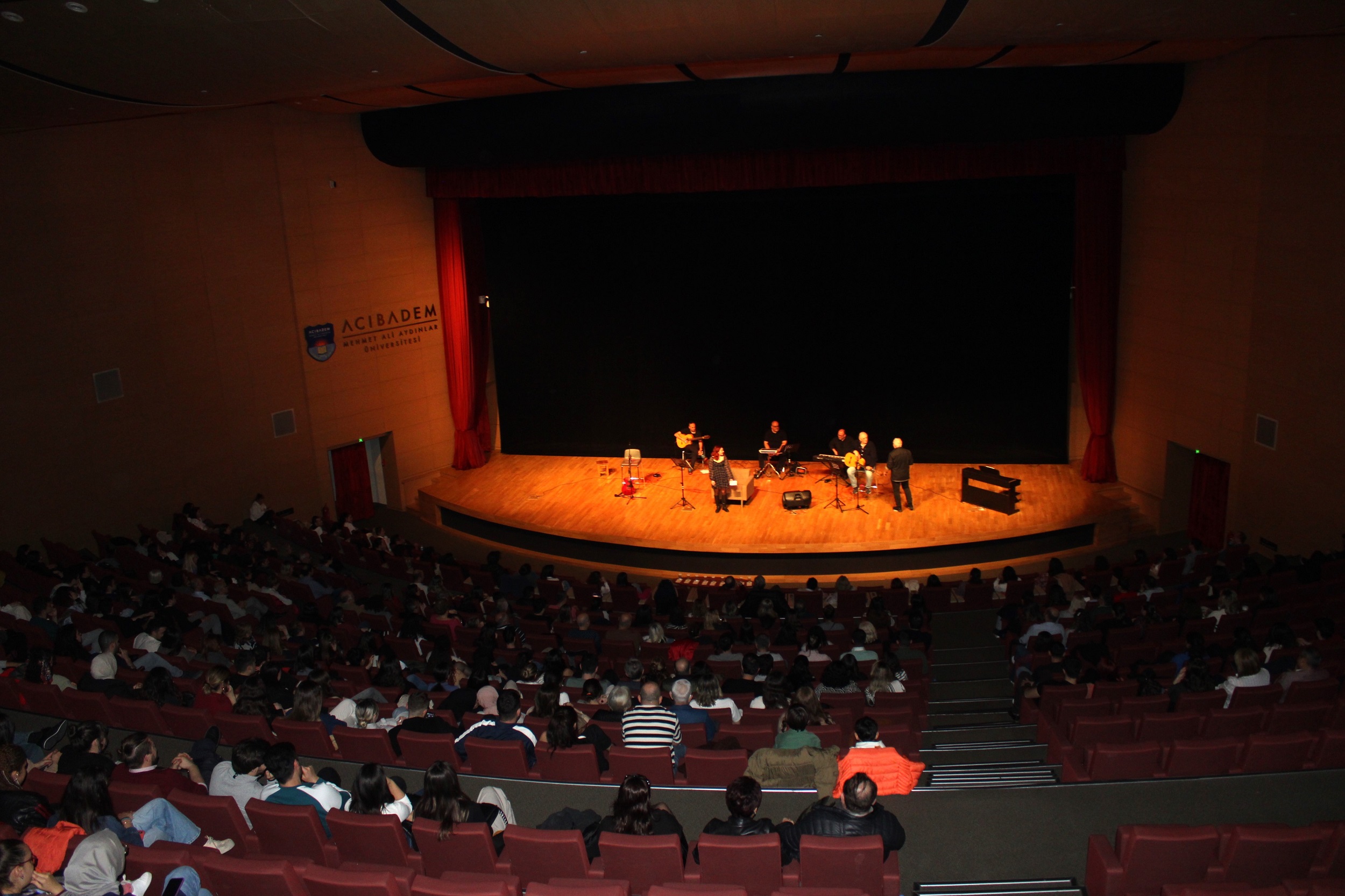 The second event of "The Curtain Opens on Campus," organized by the cooperation of Acıbadem University Drama Club and Chamber Theatre, took place on February 29, 2024, in the Acıbadem University Conference Hall. The work, a musical comedy titled "Men Write the Most Beautiful Love Songs," written and directed by Kaan Erkam, commenced with an opening song and piano piece by Prof. İrfan Güney, Vice Rector of Acıbadem University. The musical comedy, watched by 350 people, was keenly followed by Acıbadem University attendees.