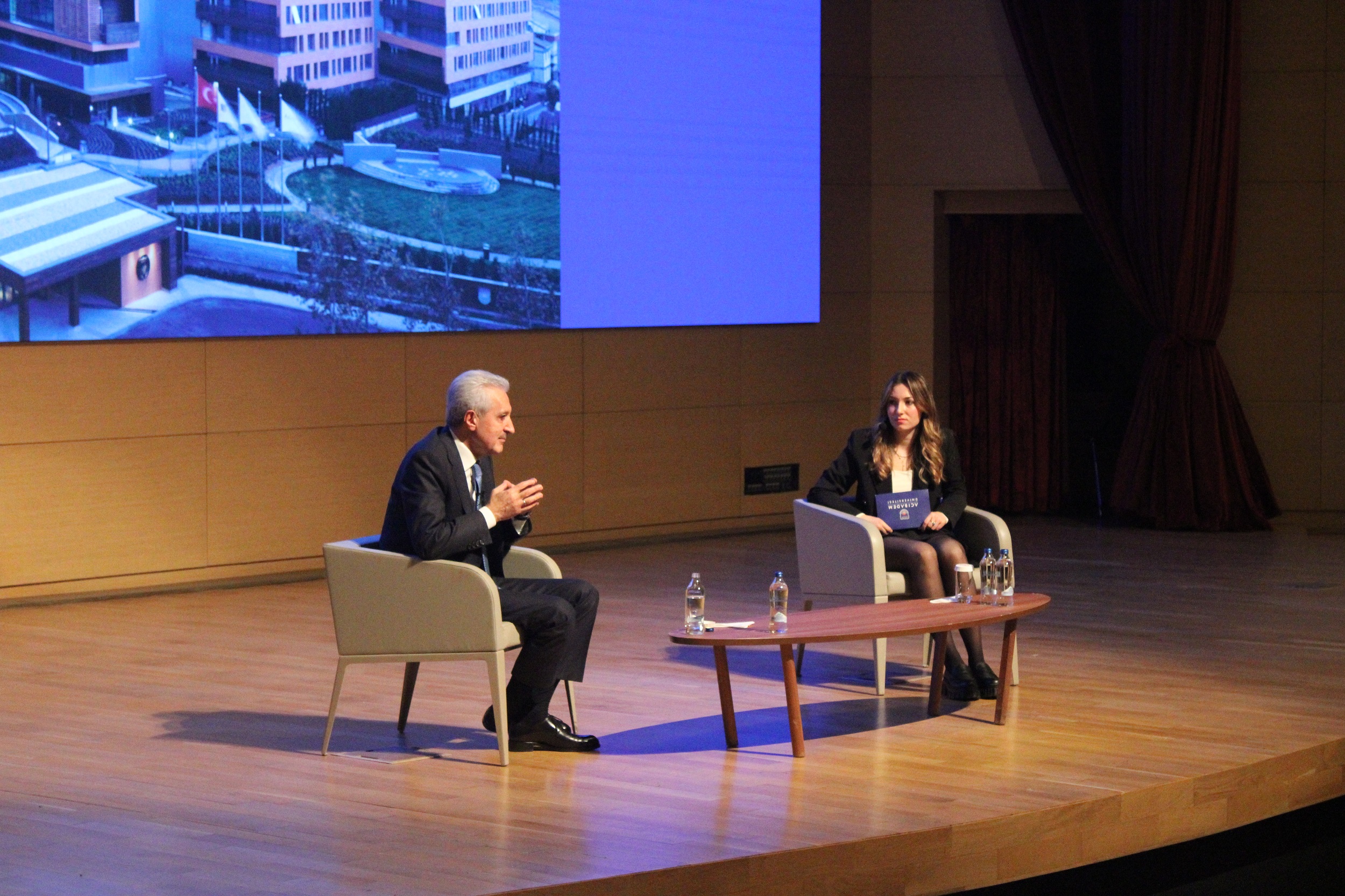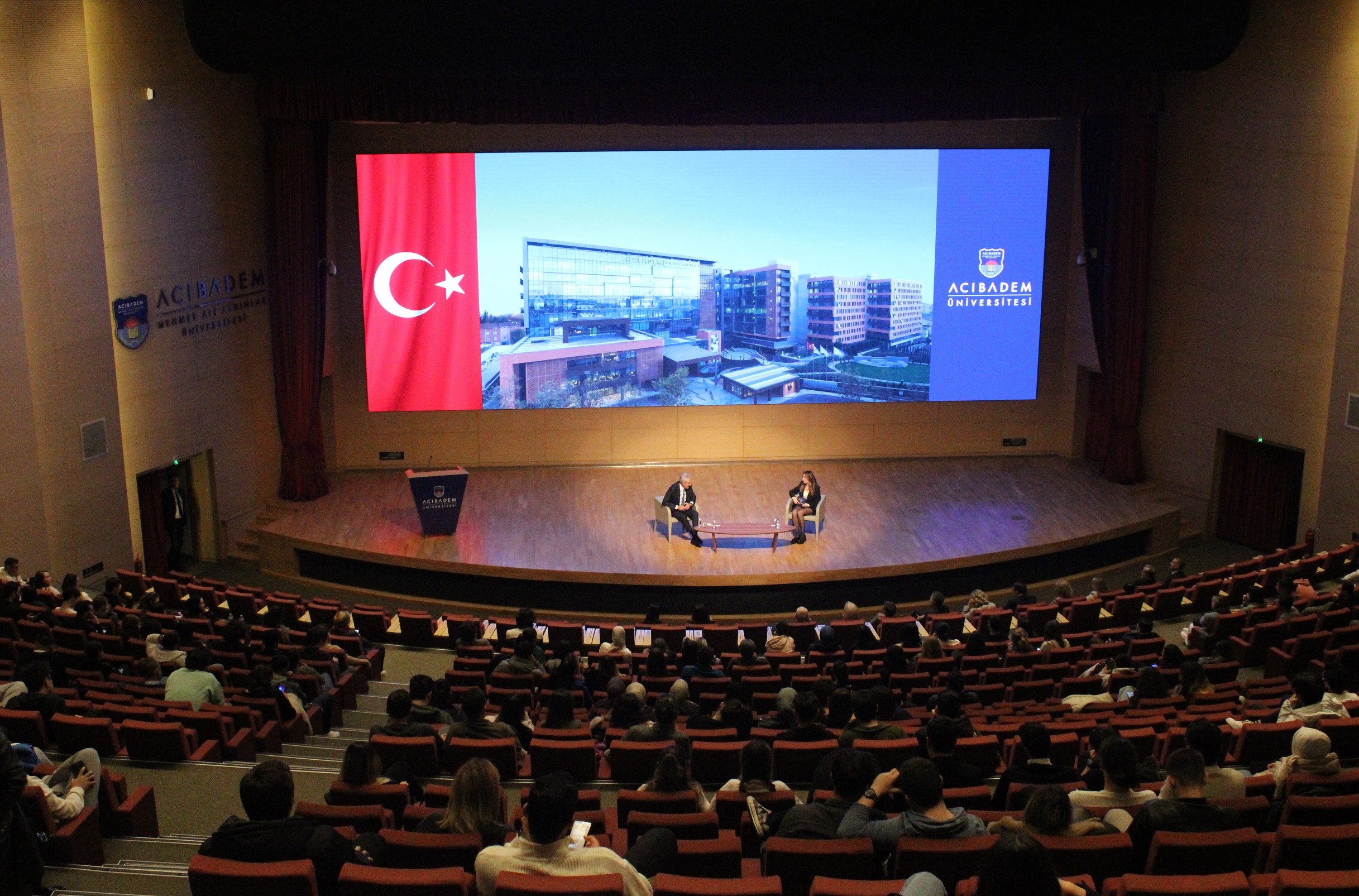 At the Entrepreneurship Talks organized by the Acıbadem University Entrepreneurship and Development Club, Mehmet Ali Aydınlar, the Chairman of the Board of Trustees of Acıbadem University and the Chairman of the Board of Acıbadem Healthcare Group, was hosted as a speaker. The event shared the successful entrepreneurial journey of Mehmet Ali Aydınlar, drawing from his life story and experiences in entrepreneurship and career choices. The event, held interactively in the Conference Hall with a participation of 250 students and staff, concluded after addressing audience questions.