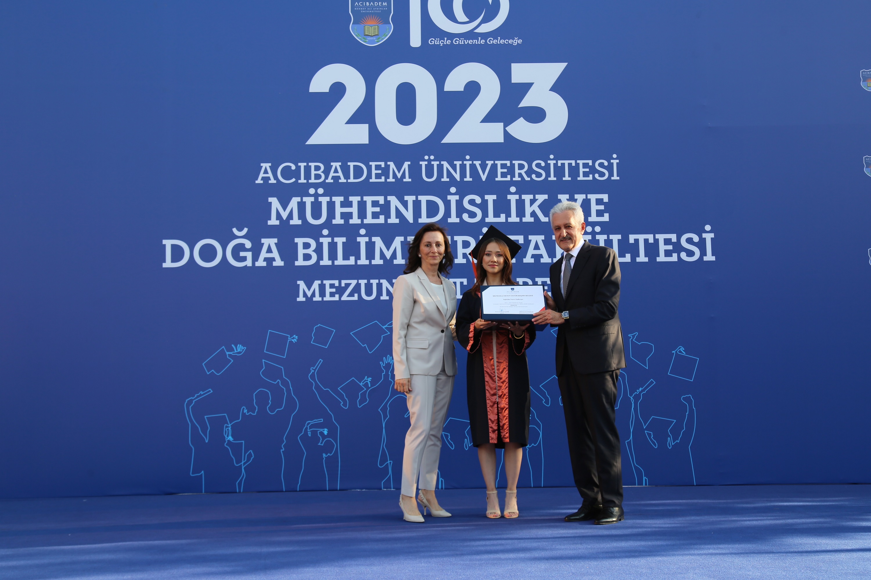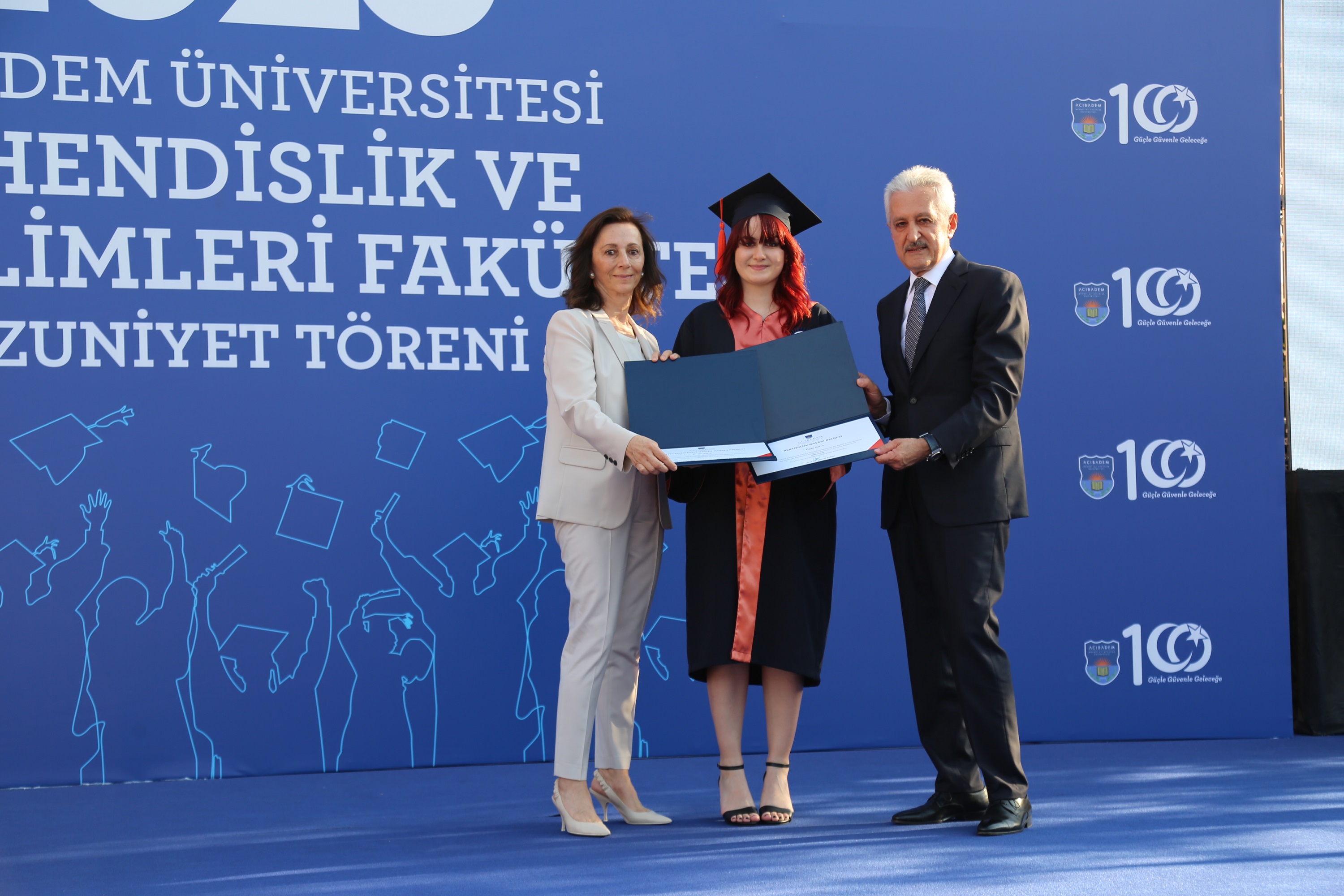 The graduates who achieved top positions in their respective departments received their achievement certificates from our Rector, Prof. Ahmet Sahin, and Vice-Rectors, Prof. Irfan Guney and Prof. Guldal Suyen.
