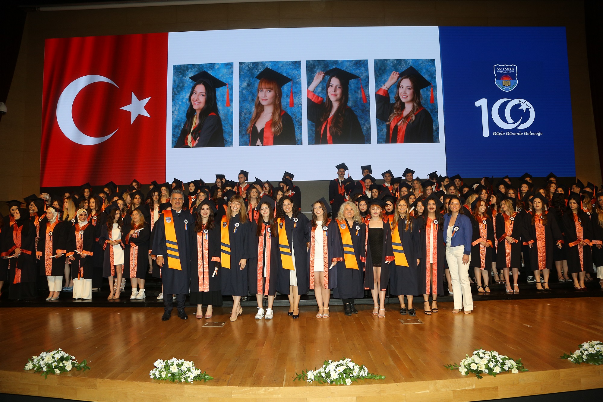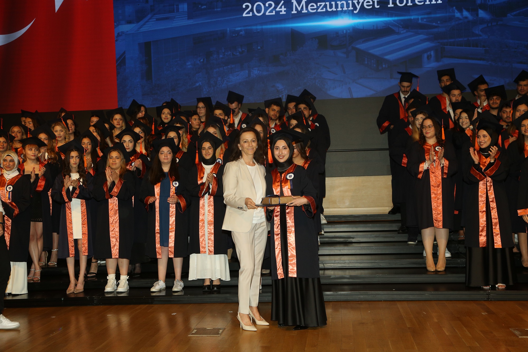 Begüm Türker received the Trustee’s Award for Outstanding Achievement, presented by Seher Aydınlar, President of the Kerem Aydınlar Foundation. The top-ranking students of each department - Begüm Turker from the Department of Physiotherapy and Rehabilitation, Ebru Isik from the Department of Nursing, Elif Gokce Kozanoglu from the Department of Nutrition and Dietetics, and Hayriye Daglar from the Department of Health Management - were awarded the Rector’s Achievement Certificates by our Rector, Prof. Ahmet Sahin. The second and third place students in each department received the Rector’s Achievement Certificates from our Vice-Rector, Prof. Guldal Suyen, our Dean, Prof. Murat Bas, and the department heads.