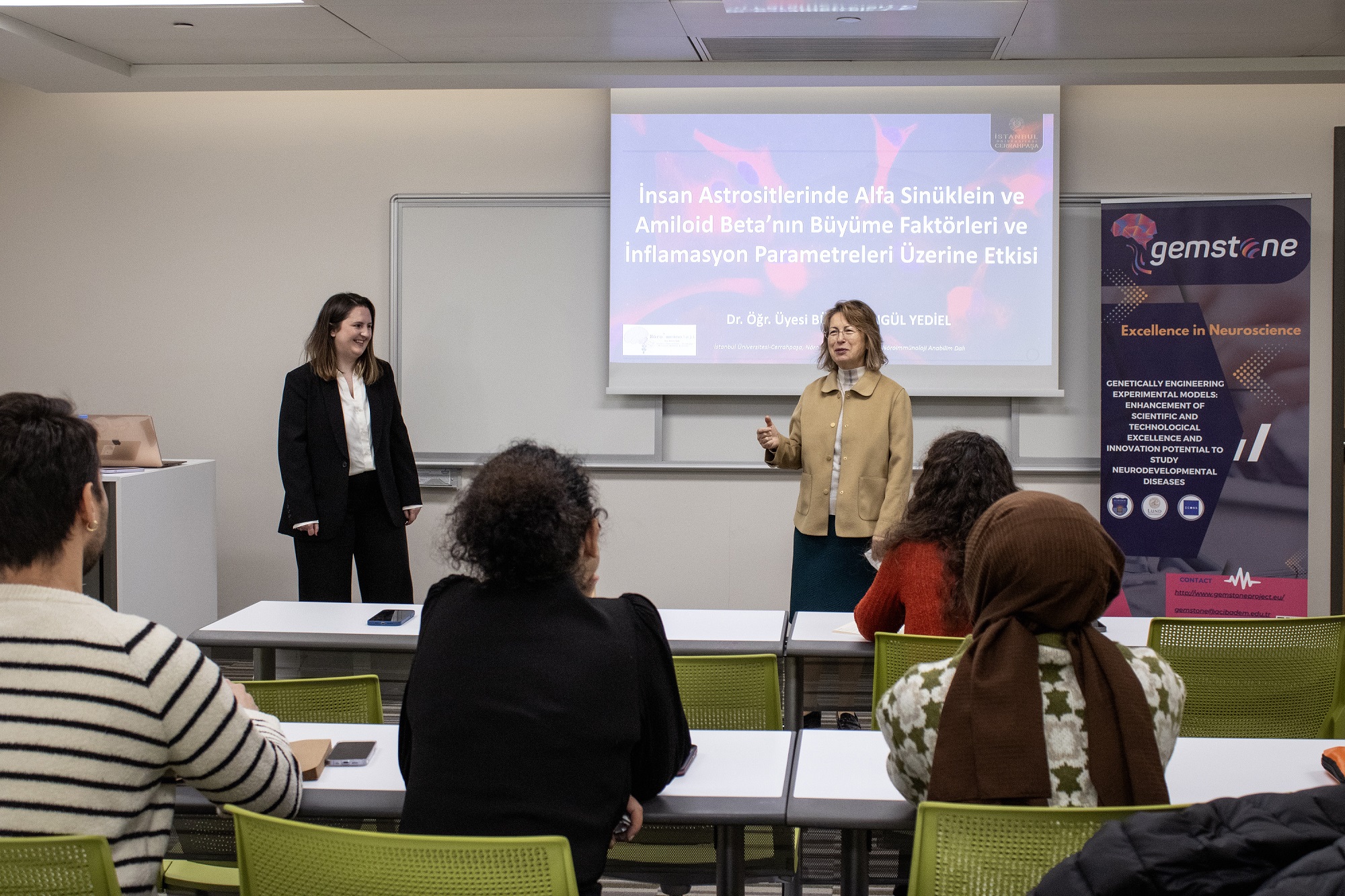 On Friday, 24 January 2024, the Horizon Europe-funded GEMSTONE Project and Acibadem Mehmet Ali Aydinlar University’s (ACU) Neuroscience PhD Programme proudly hosted a seminar led by Asst. Prof. Busra Sengul Yediel from the Neuroimmunology Department at Istanbul University - Cerrahpasa’s Institute of Neurological Sciences. The event, held at ACU’s Kerem Aydinlar Campus, delved into groundbreaking research on the pivotal role of astrocytes in neurodegenerative diseases.