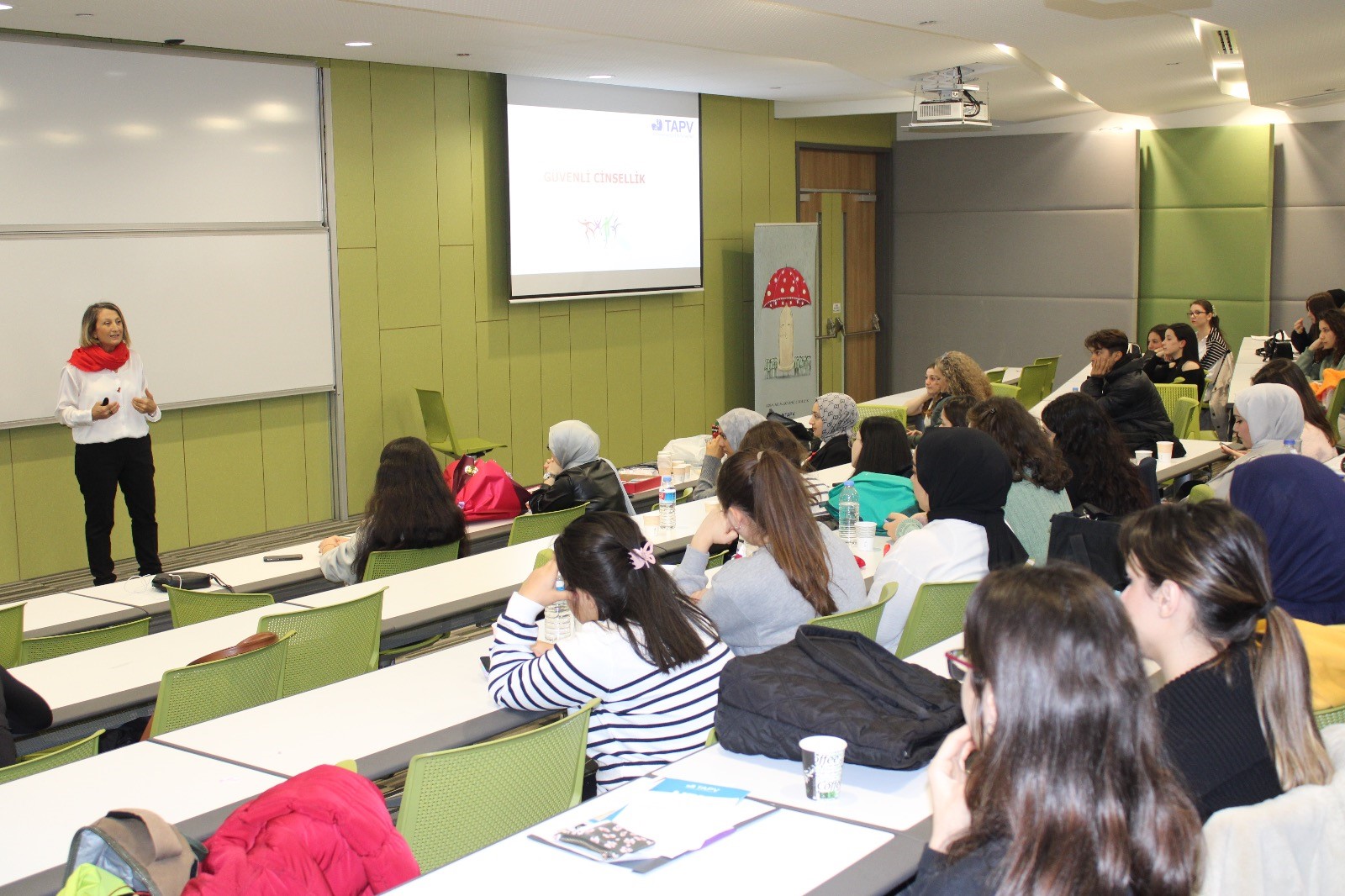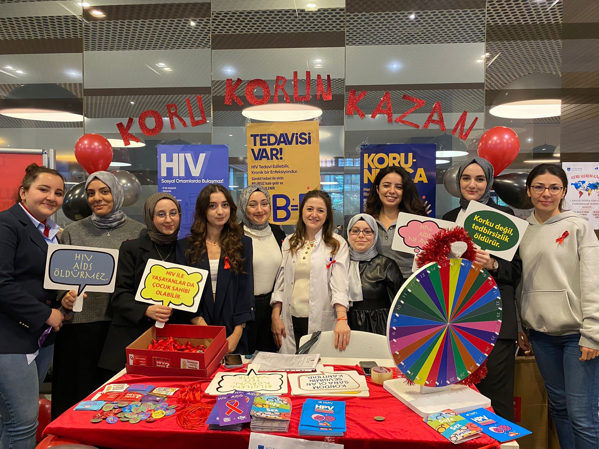The 'HIV/AIDS Awareness Event,' organized by the Nursing Department of Acıbadem University and the Turkish Family Health and Planning Foundation, took place on December 28, 2023. Nurse Nurşen Kanbur, a Sexual Health and Reproductive Health Educator, conducted a presentation titled 'HIV & Safe Sexuality in a Societal Gender Perspective' with the aim of increasing university students' awareness about HIV/AIDS and providing information about sexually transmitted diseases. The event, attended by a total of 260 individuals, addressed questions such as 'What are HIV and AIDS?', 'What are the transmission routes of sexually transmitted diseases?', and 'What are the prevention methods for sexually transmitted diseases?'. As part of the event, fourth-year students of the Nursing Department set up a booth with the slogan 'Protect, Prevent, Win'. The booth distributed brochures, badges, red ribbons, and bracelets to attract students' attention. The interactive presentation included answering questions from the participants.