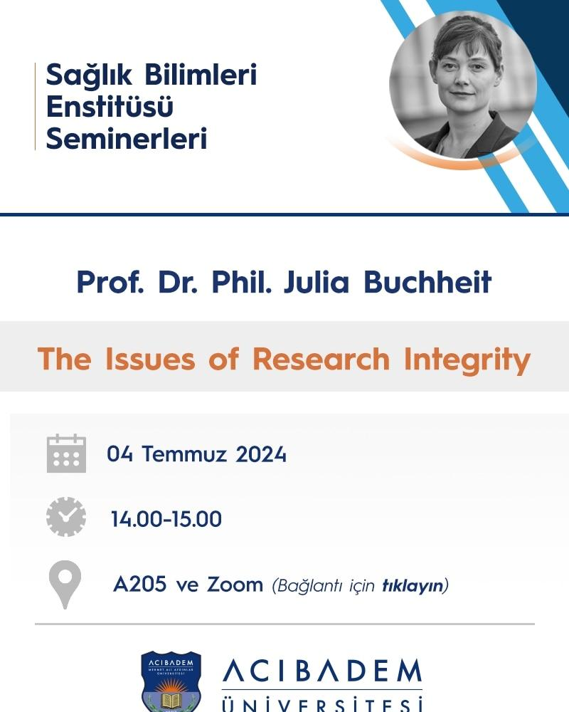 Acibadem University Graduate School of Health Sciences hosted Prof. Dr. Julia Priess-Buchheit from Kiel University, the Vice President of the Network for Education and Research Quality (NERQ), in collaboration with Prof. Dr. Yesim Isil Ulman from the Bioethics MSc Programme. Prof. Buchheit delivered a speech about “The Issues of Research Integrity” on July 4, 2024. Many researchers, doctoral and master's students and faculty members interestedly attended the conference, and took part in the Q&A interactively.