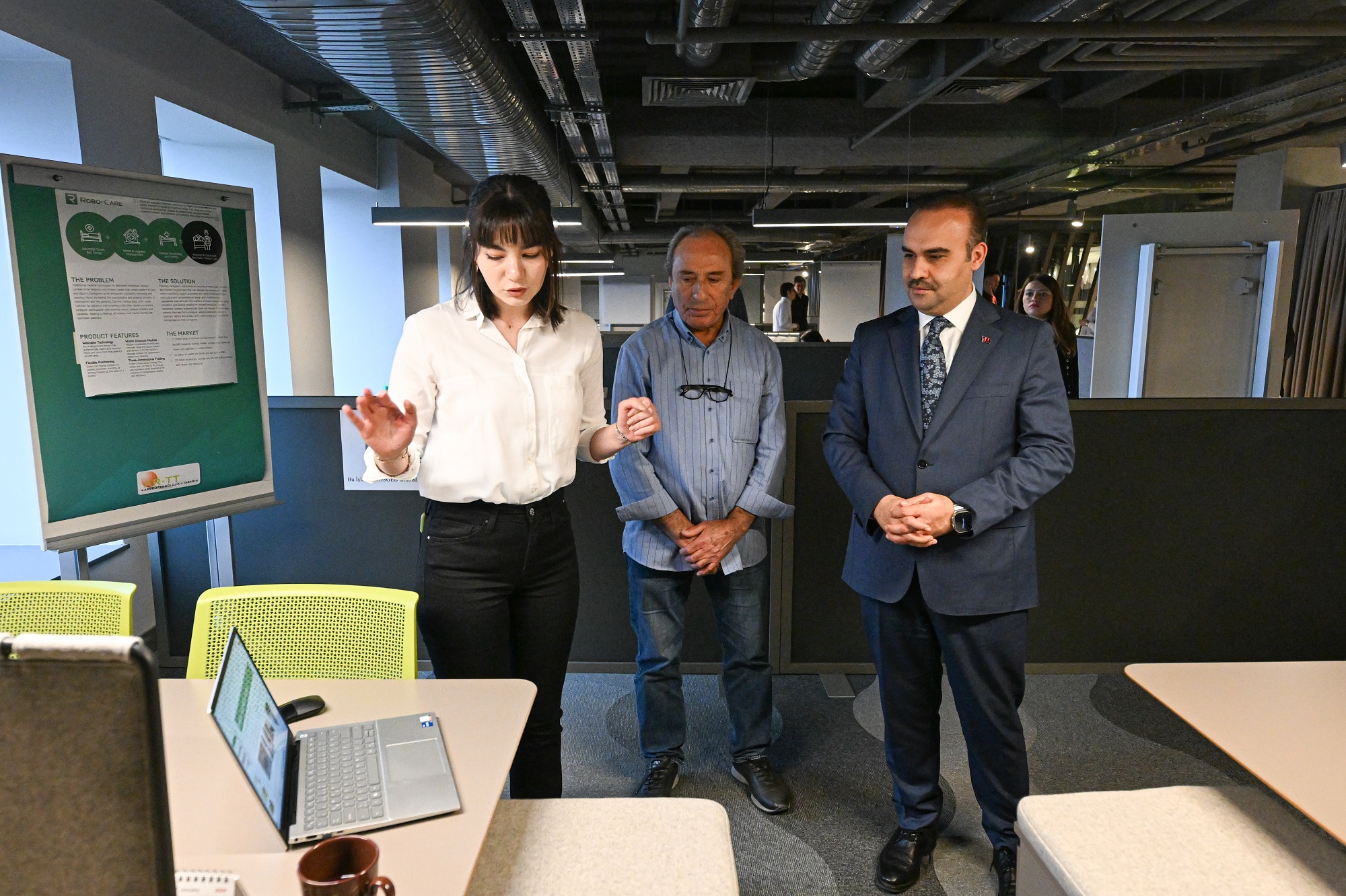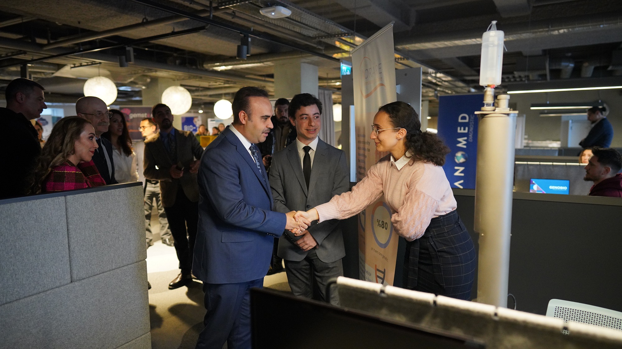 The opening program concluded with a group photo and ribbon-cutting ceremony. Afterwards, Minister Kacır, ISTKA General Secretary Taşkent, KOSGEB President İbrahimcioğlu, and KOSGEB IMES Director Ertuğrul Çetinkaya, along with other guests, visited the ISTisNA Platform and TEKMER. During the visit to the ISTisNA Platform, coordinated activities in the field of unidentified and rare diseases such as biobank activities, cyclic research, education, and dissemination, and important outcomes that will guide the diagnosis process were discussed. The TEKMER visit allowed entrepreneurs to inform the guests about their entrepreneurial activities.