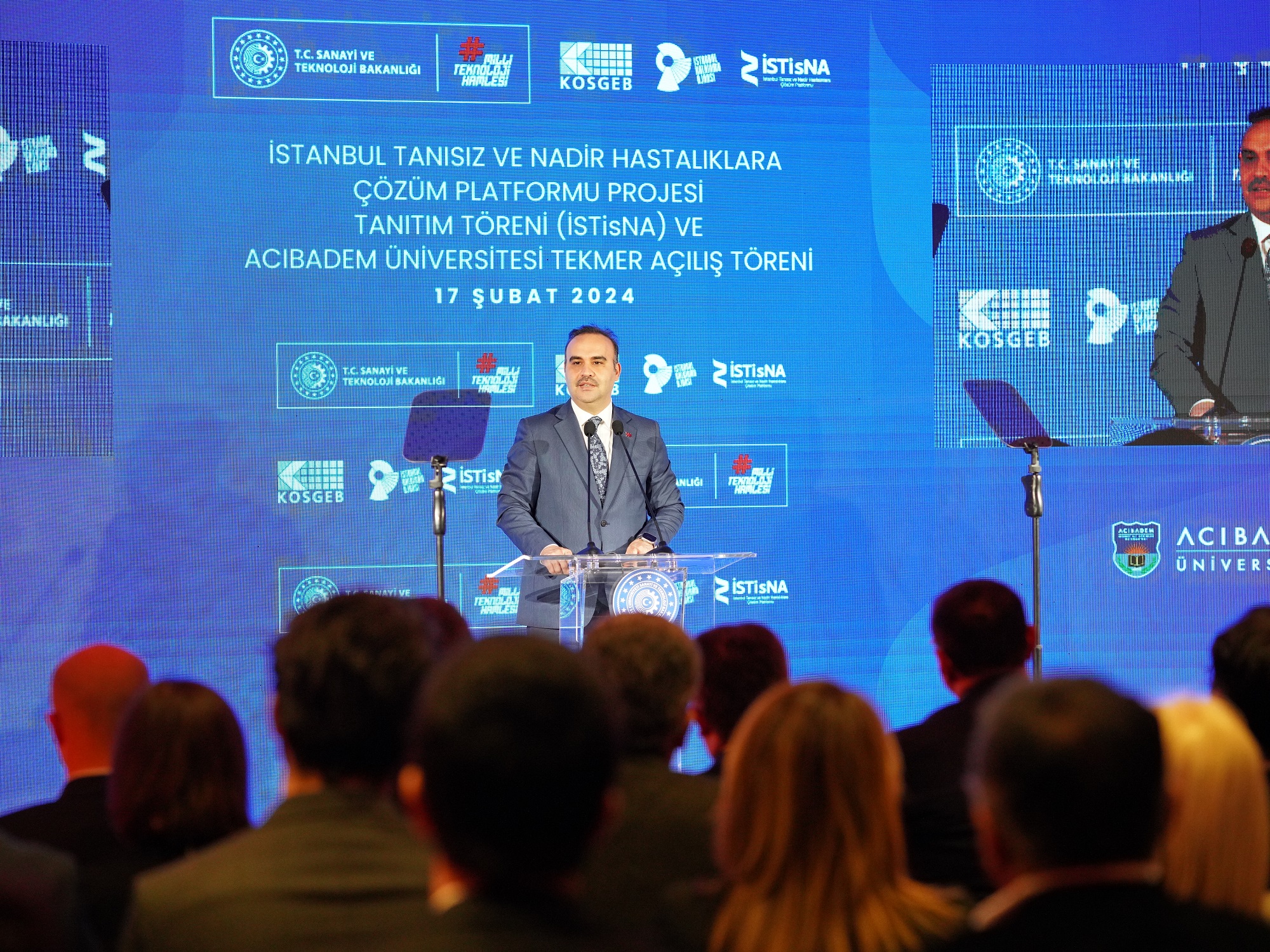 The Istanbul Undiagnosed and Rare Diseases Solution Platform Project Introduction Meeting and the Acıbadem University Technology Development Center (TEKMER) Opening Program took place on February 17, 2024, at our University with the participation of the Turkish Minister of Industry and Technology, Mr. Fatih Kacır. The event was attended to by notable figures including Istanbul Deputy Serkan Bayram, Istanbul Deputy Governor Nail Anlar, President of the Turkey Health Institutes Prof. Erhan Akdoğan, Rector of Acıbadem University Prof. Ahmet Şahin, Rector of Istanbul University Prof. Osman Bülent Zülfikar, along with many guests including stakeholders of the ISTisNA project.