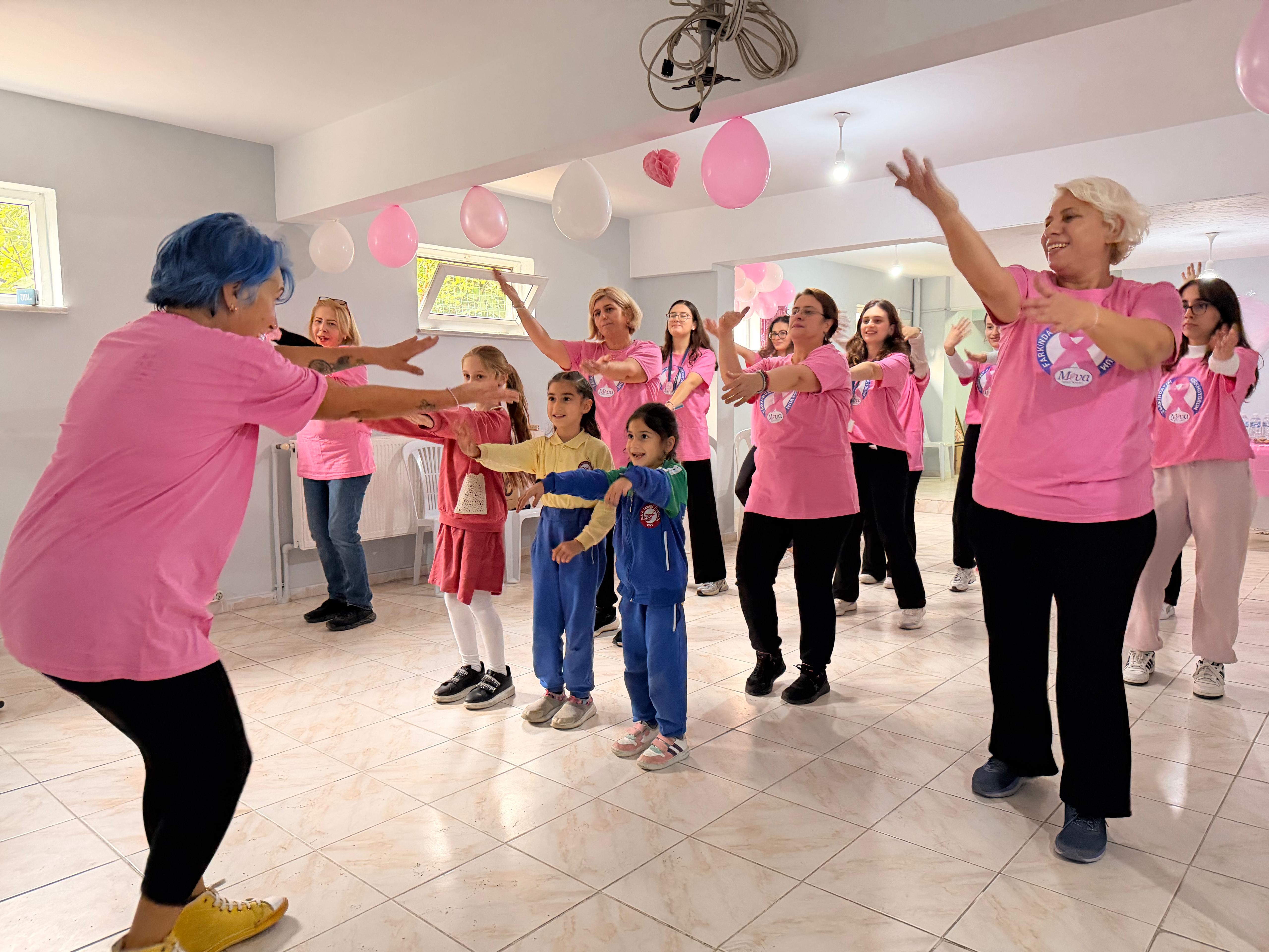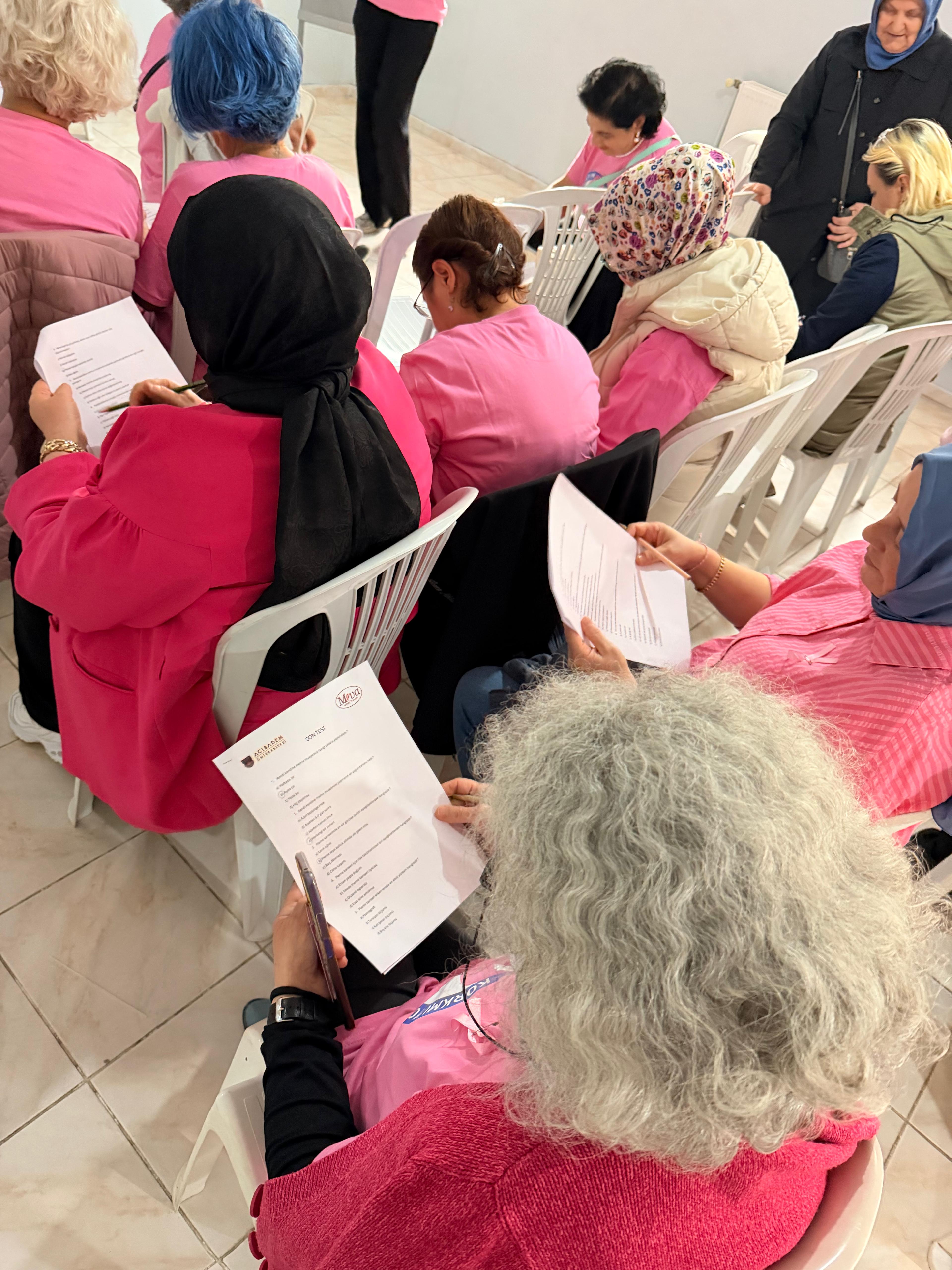 Following the Zumba session, MEVA volunteer and fourth-year nursing student Nazar Köse delivered a breast health education session. The training covered essential topics such as the prevalence of breast cancer in women, the importance of screening for early diagnosis, and Breast Self-Examination (BSE). The presentation concluded with an interactive Q&A session enriched by participants’ questions.