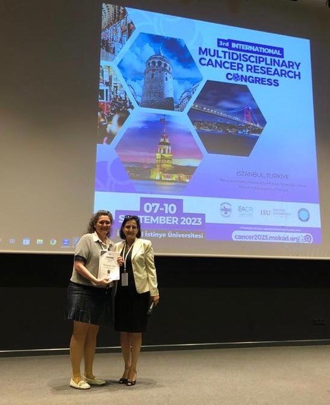 Faculty of Engineering and Natural Sciences, Department of Molecular Biology and Genetics faculty member Assist. Prof. Nazli Keskin Toklu was awarded the oral presentation award at the "3rd International Multidisciplinary Cancer Research Congress - Cancer 2023" congress organized by the Molecular Cancer Research Association (MOKAD) between 7-10 September 2023.