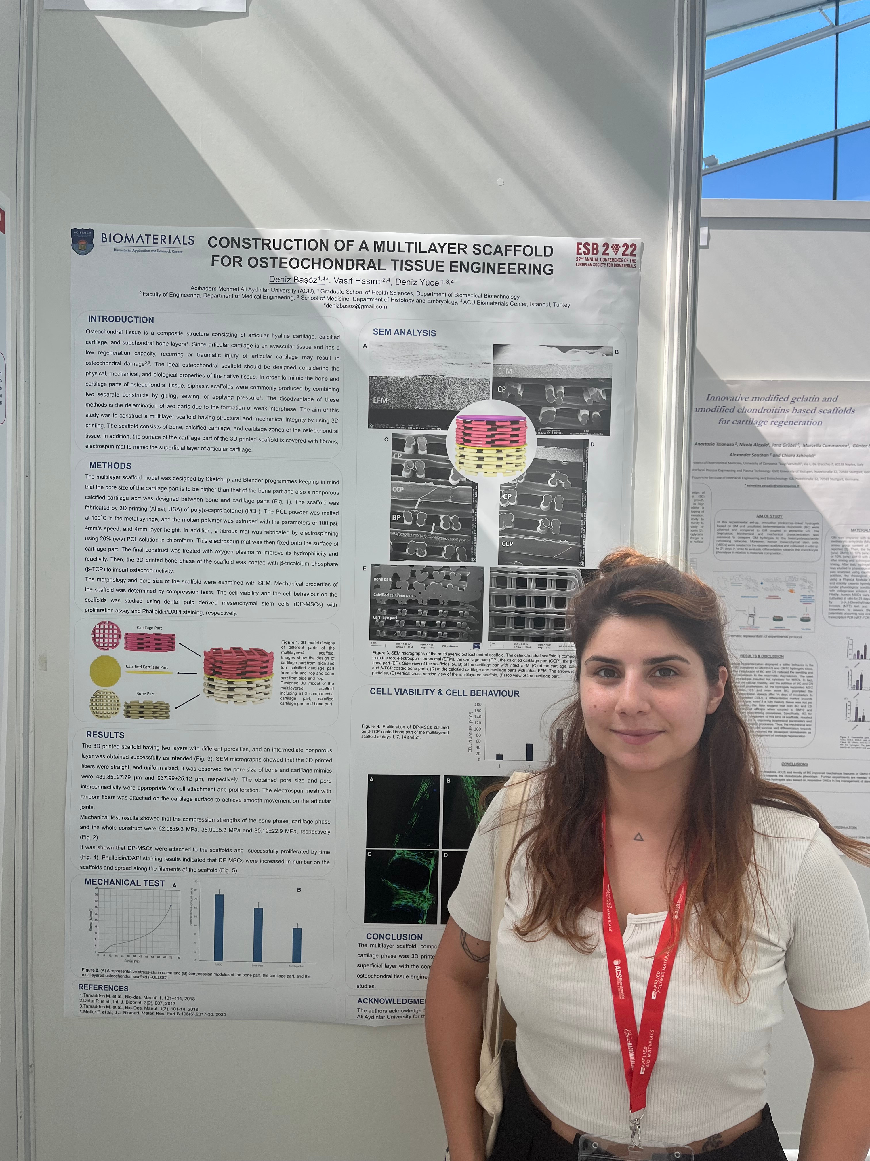 Deniz Basoz, a PhD student at ACU Biomaterials presented her results at #ESB2022 as a poster “Construction of A Multilayer Scaffold For Osteochondral Tissue Engineering”.