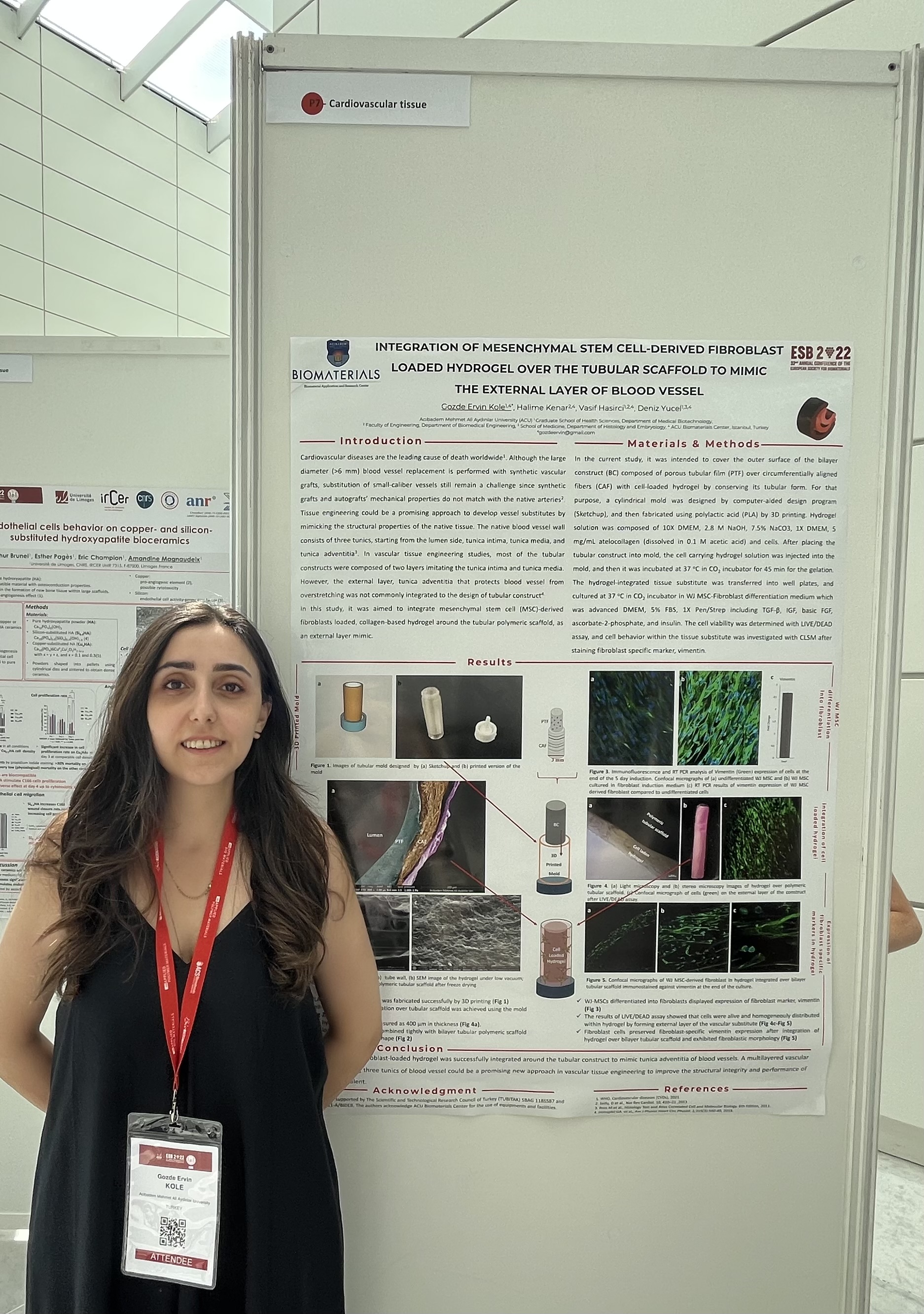 Gözde Ervin Köle, a PhD student at ACU Biomaterials Center presented her results at #ESB2022 as a poster “Integration of Mesenchymal Stem Cell-Derived Fibroblast Loaded Hydrogel Over the Tubular Scaffold to Mimic the External Layer of Blood Vessel”.