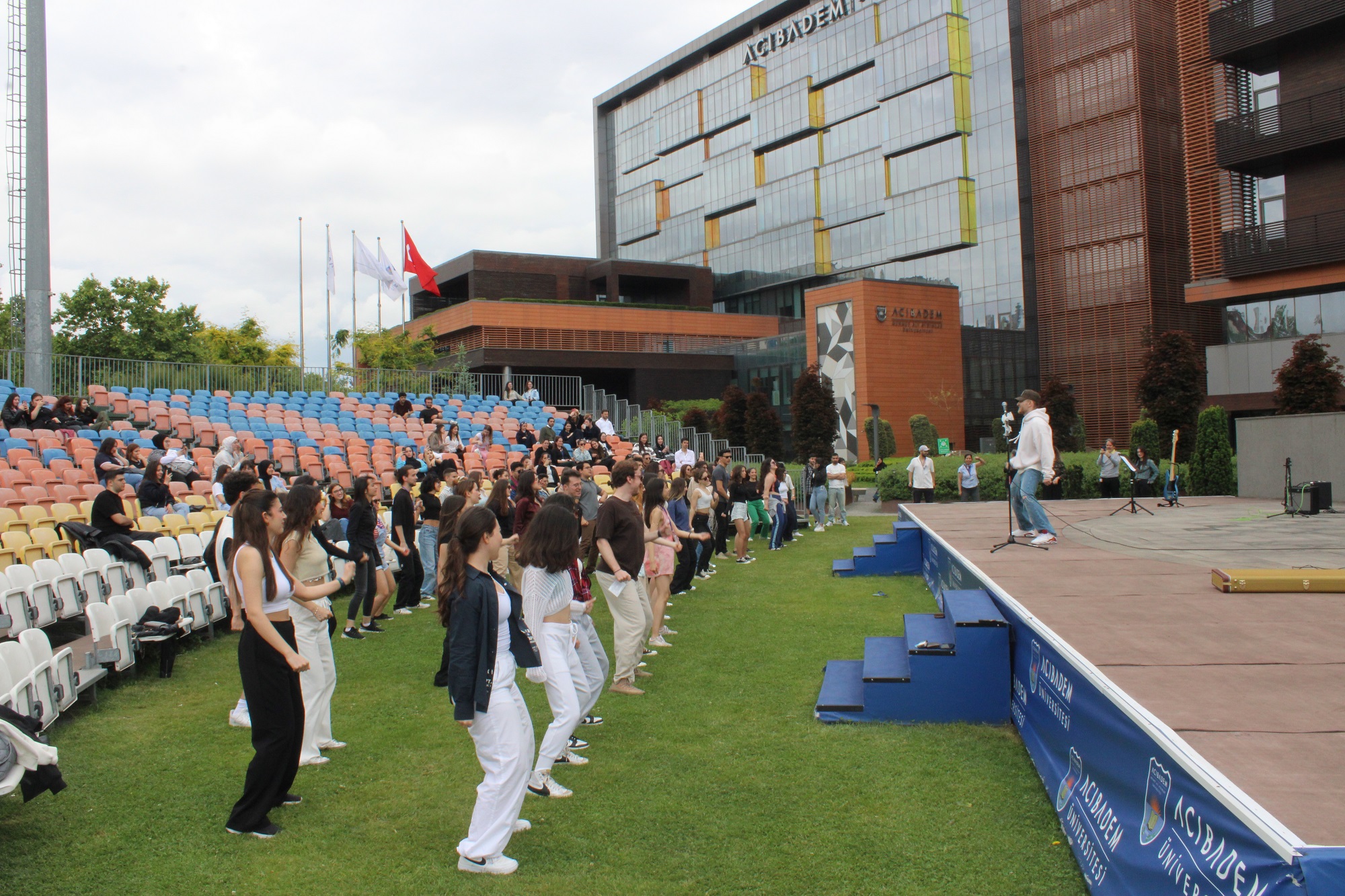 On May 23, 2024, our university hosted the “100th Anniversary Youth and Inter-University Dance Festival” in celebration of the May 19 Commemoration of Ataturk, Youth and Sports Day. Organized by the ACU Dance Club, the festival featured participation from our students, academic and administrative staff, and Vice-Rector Prof. Dr. Irfan Guney. The event commenced with Reggaeton and Samba performances at the lawn amphitheatFollowing the highly anticipated interactive performances, the ACU Pop Rock Group, under the ACU Music Club, performed a repertoire prepared with Filiz Özay, providing unforgettable moments for the students as popular songs were sung together.On May 23, 2024, our university hosted the “100th Anniversary Youth and Inter-University Dance Festival” in celebration of the May 19 Commemoration of Atatürk, Youth and Sports Day. Organized by the ACU Dance Club, the festival featured participation from our students, academic and administrative staff, and Vice-Rector Prof. Dr. Irfan Guney. The event commenced with Reggaeton and Samba performances at the lawn amphitheater.