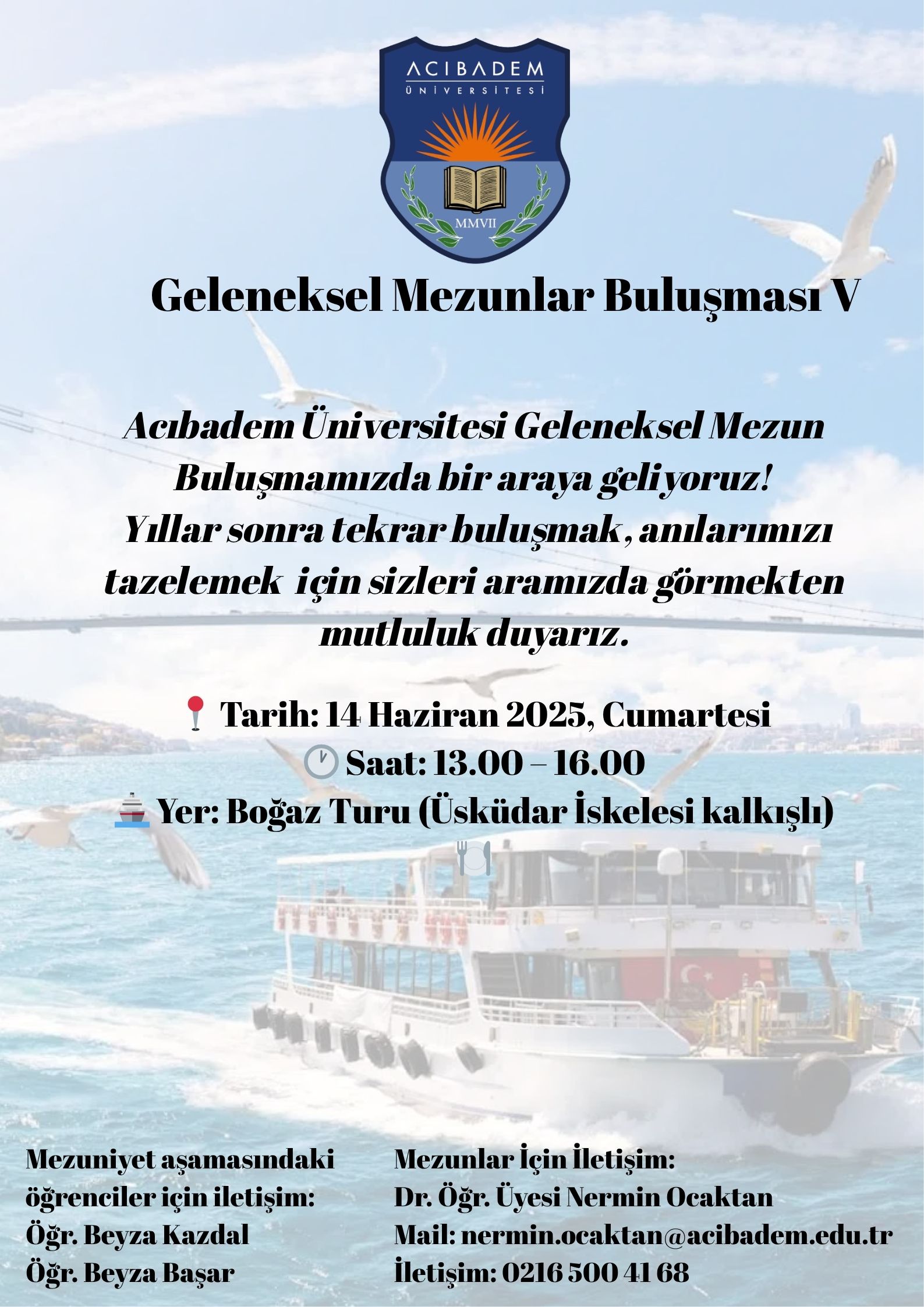 The fifth edition of the “Traditional Alumni Gathering,” organized by the Acıbadem University Department of Nursing, took place on June 14, 2025, as a boat tour on the Bosphorus. The event, coordinated by the Department of Nursing’s Social and Scientific Activities Committee, welcomed 68 participants.