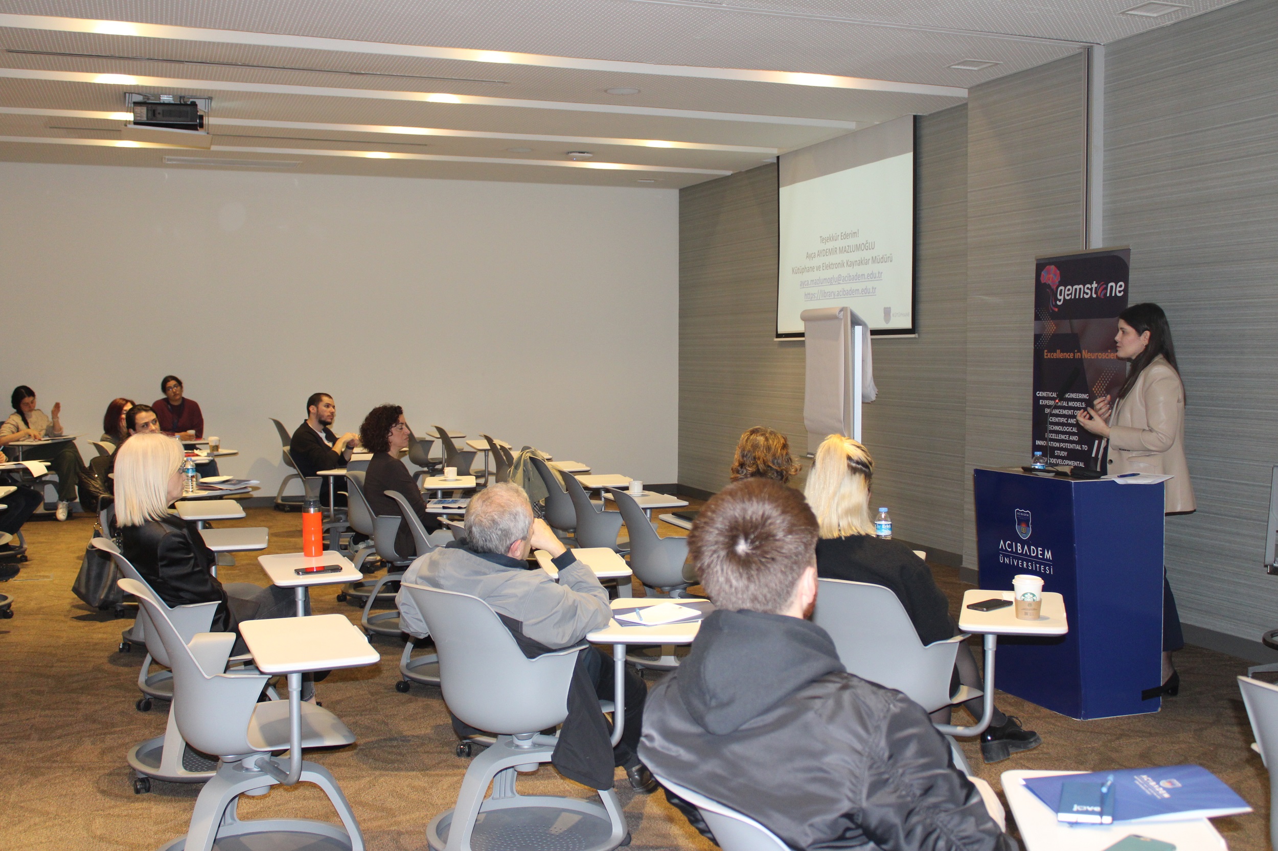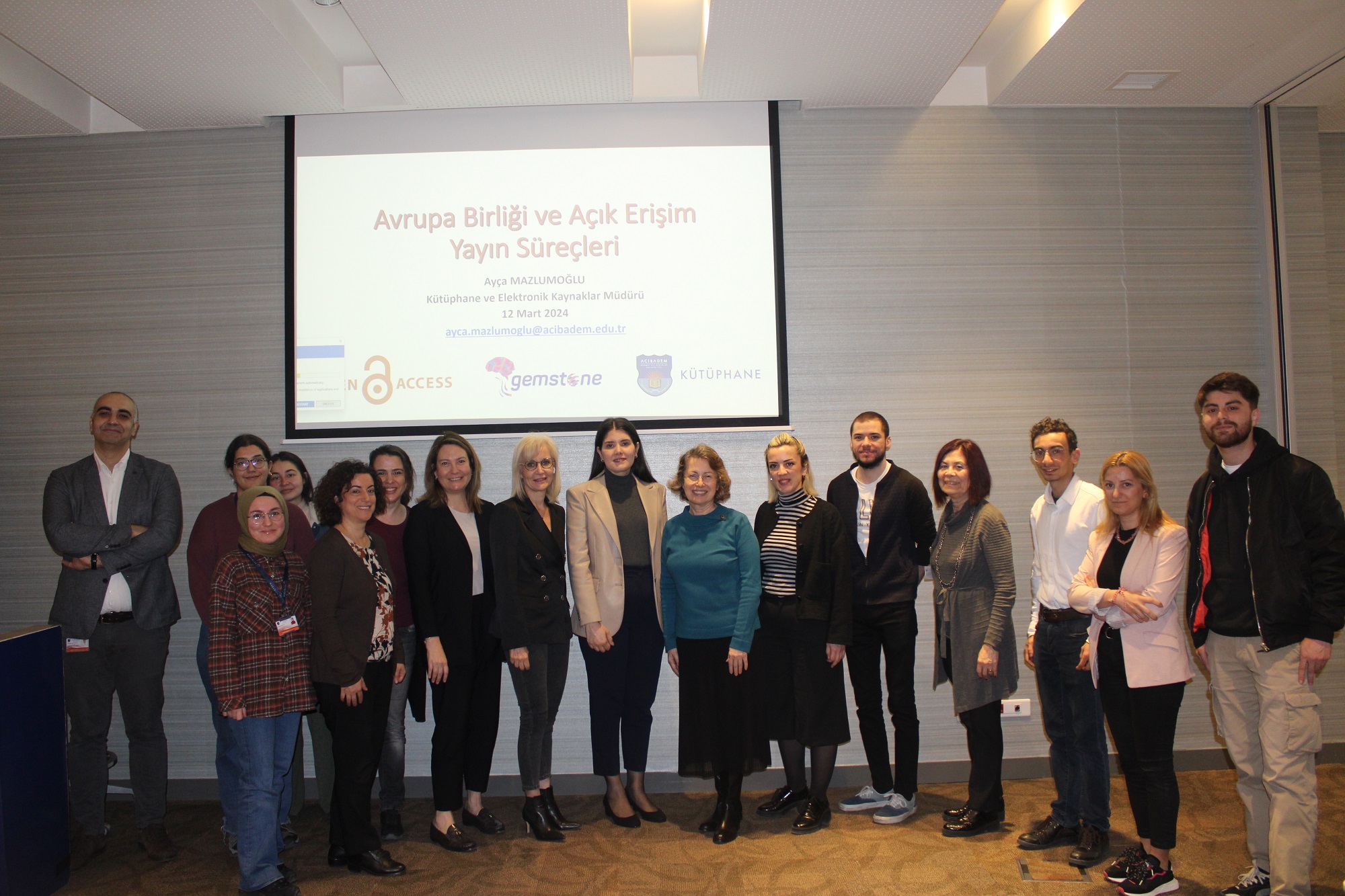 As part of Acibadem University's GEMSTONE Project, Ayca Aydemir Mazlumoglu, Director of Library and Electronic Resources at Acıbadem University, delivered a comprehensive presentation on Open Access, European Union regulations, and the processes involved in Open Access publishing. Held on March 12, 2024, the event covered topics such as the definition and importance of Open Access, the impact of its implementation in Turkey, and global developments. The presentation examined Open Access practices in Turkey, reflections of global trends, European Union Open Access policies, and publishing processes. Additionally, topics like transformative agreements in libraries, the Open Access requirements of the Horizon Europe Program, and FAIR principles were discussed. The event concluded with a Q&A session, attended by 46 participants.