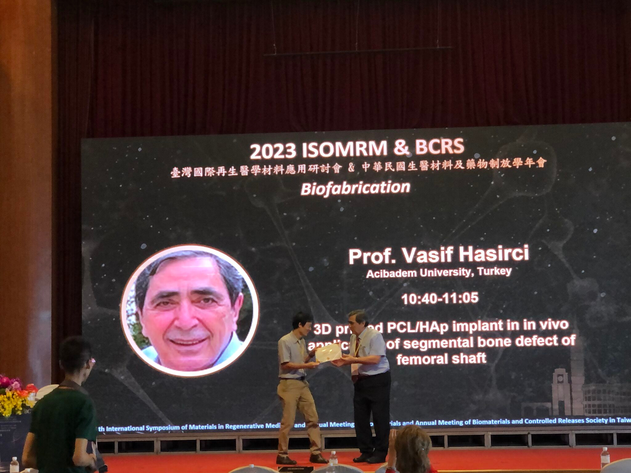 Our Center Director Prof. Dr. Vasıf Hasırcı participated as an invited speaker at the ISOMRM & BCR, 6th International Symposium on Materials on Regenerative Medicine (31.08–03.09.2023, Taipei, Taiwan). He presented the study titled "3D printed PCL/HAp implant in in vivo application of segmental bone defect of femoral shaft D.Basoz, M.I.Karaman, S.Buyuksungur, D.Yucel, N.Hasirci, B.Kocaoglu, V. Hasirci