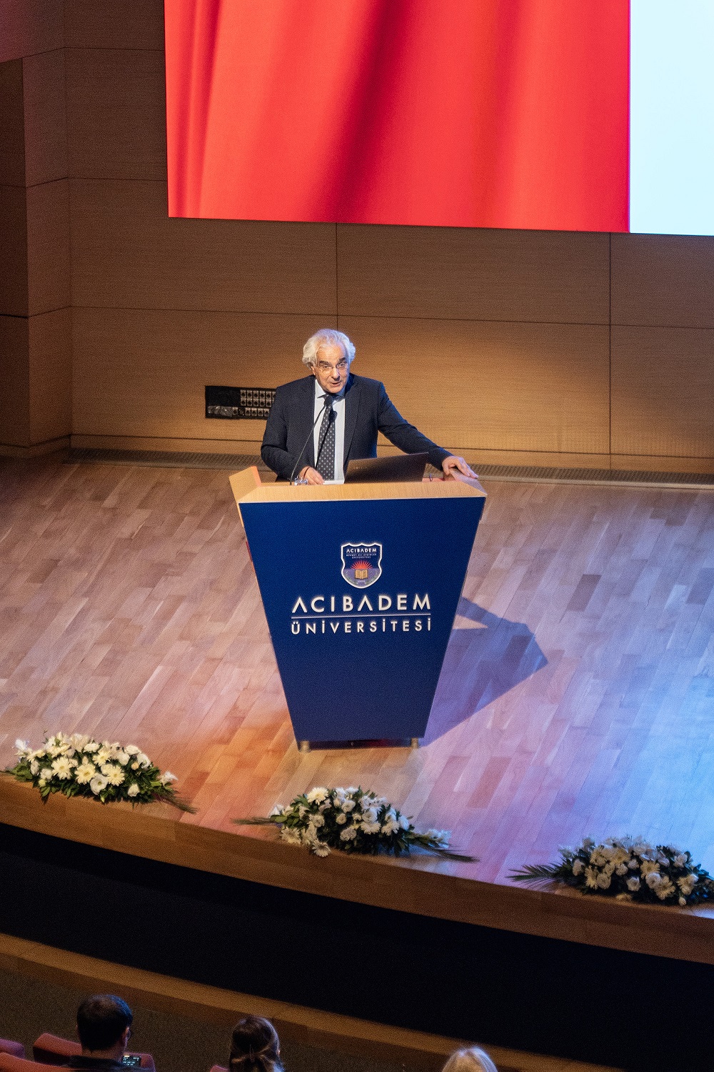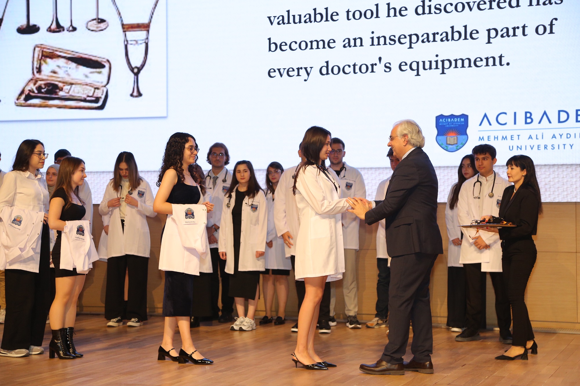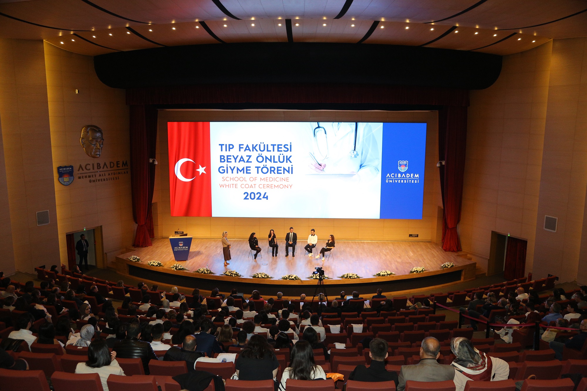The Faculty of Medicine's traditional White Coat Ceremony was held on 21 October 2024, at the conference hall Acıbadem University. First-year students, the future physicians, donned their personalized white coats and stethoscopes, symbolizing the beginning of their medical education, from the Dean of the School of Medicine, Prof. Dr. Nadi Bakırcı.