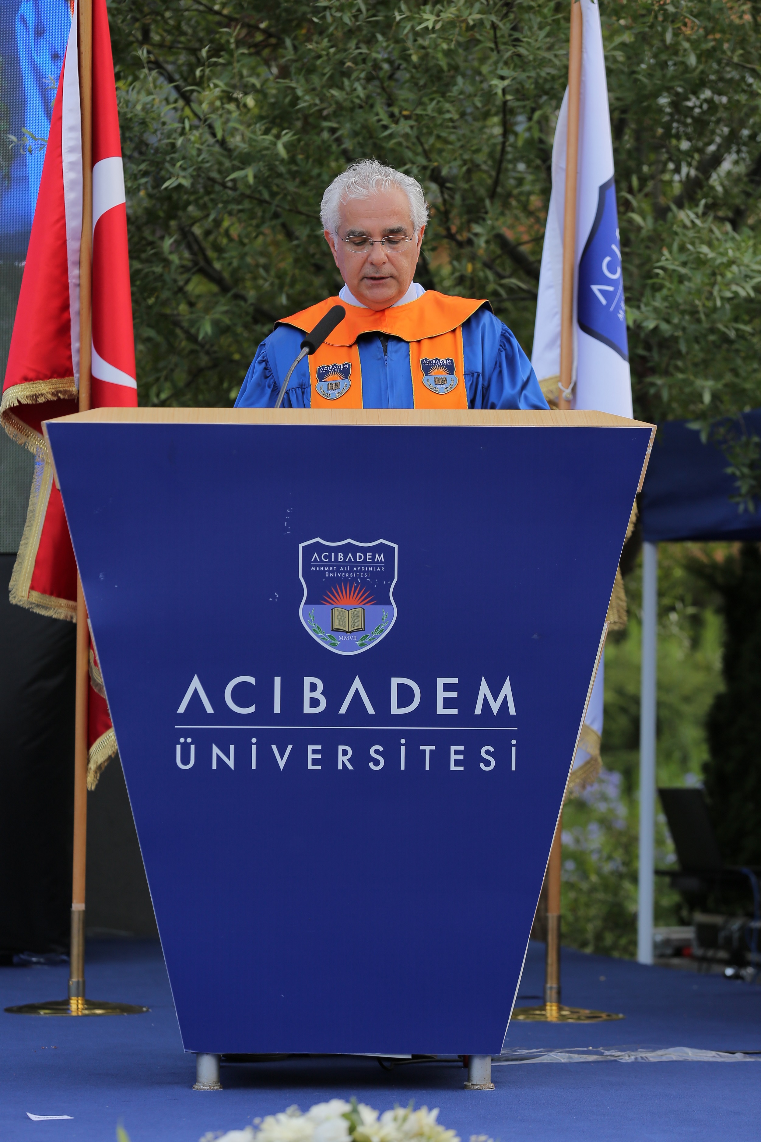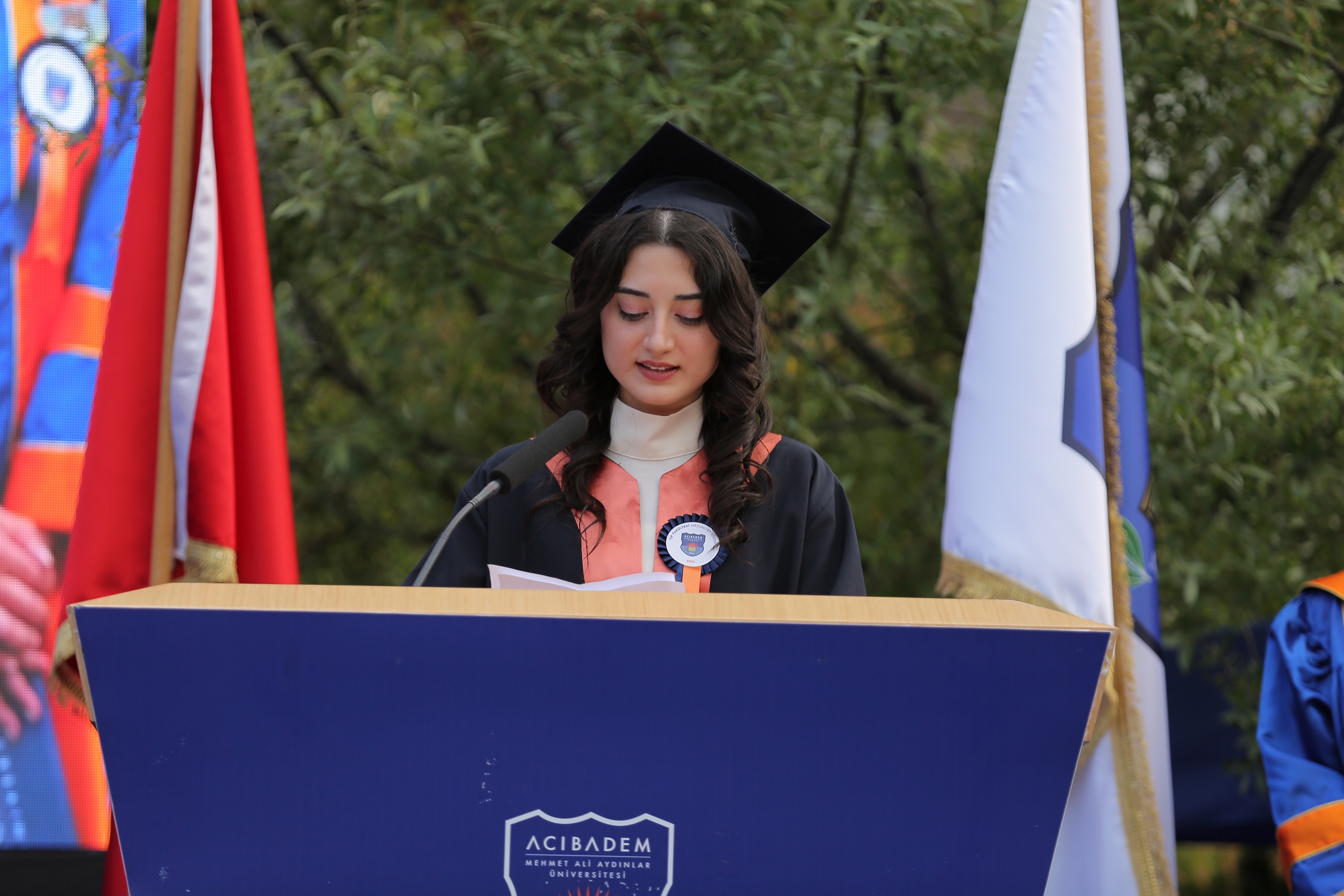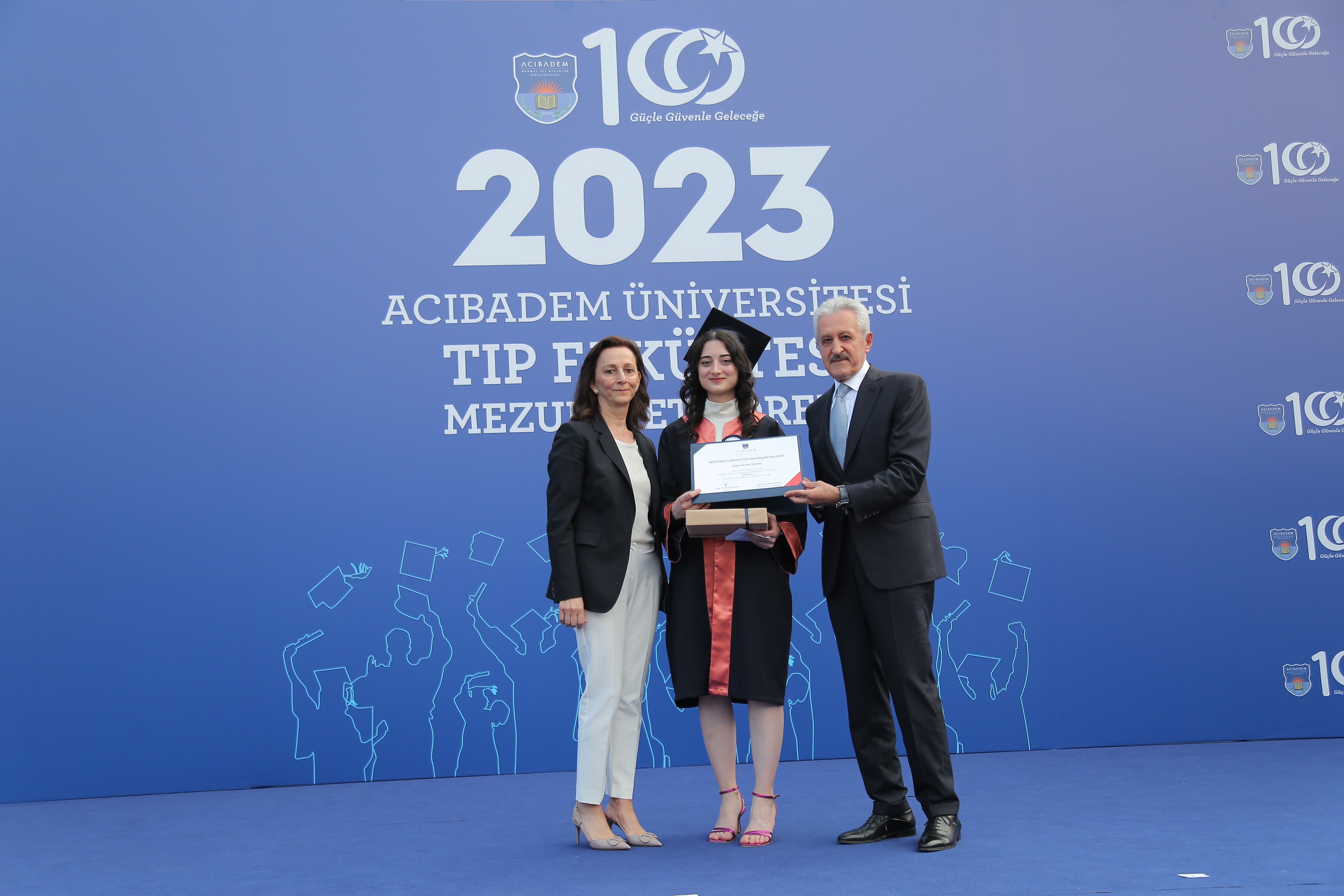 The School of Medicine Graduation Ceremony commenced with a speech by our Rector, Prof. Ahmet Sahin and continued with a speech by Dr. Ayse Pelin Ozcan, who was the top student of the term, representing the graduates of the faculty. Next, our School of Medicine Dean, Prof. Nadi Bakırcı, delivered his speech. Dr. Ayse Pelin Ozcan, who completed the School of Medicine with the highest honors, was presented with the Board of Trustees' Certificate of Outstanding Achievement by our Board of Trustees Chairman, Mehmet Ali Aydinlar, and the President of the Kerem Aydinlar Foundation, Seher Aydinlar. The second-place student of the School of Medicine, Dr. Ezgi Bulbul, and the third-place student, Dr. Kardelen Uzun, received the Rector's Achievement Certificates from our Rector, Prof. Ahmet Sahin.