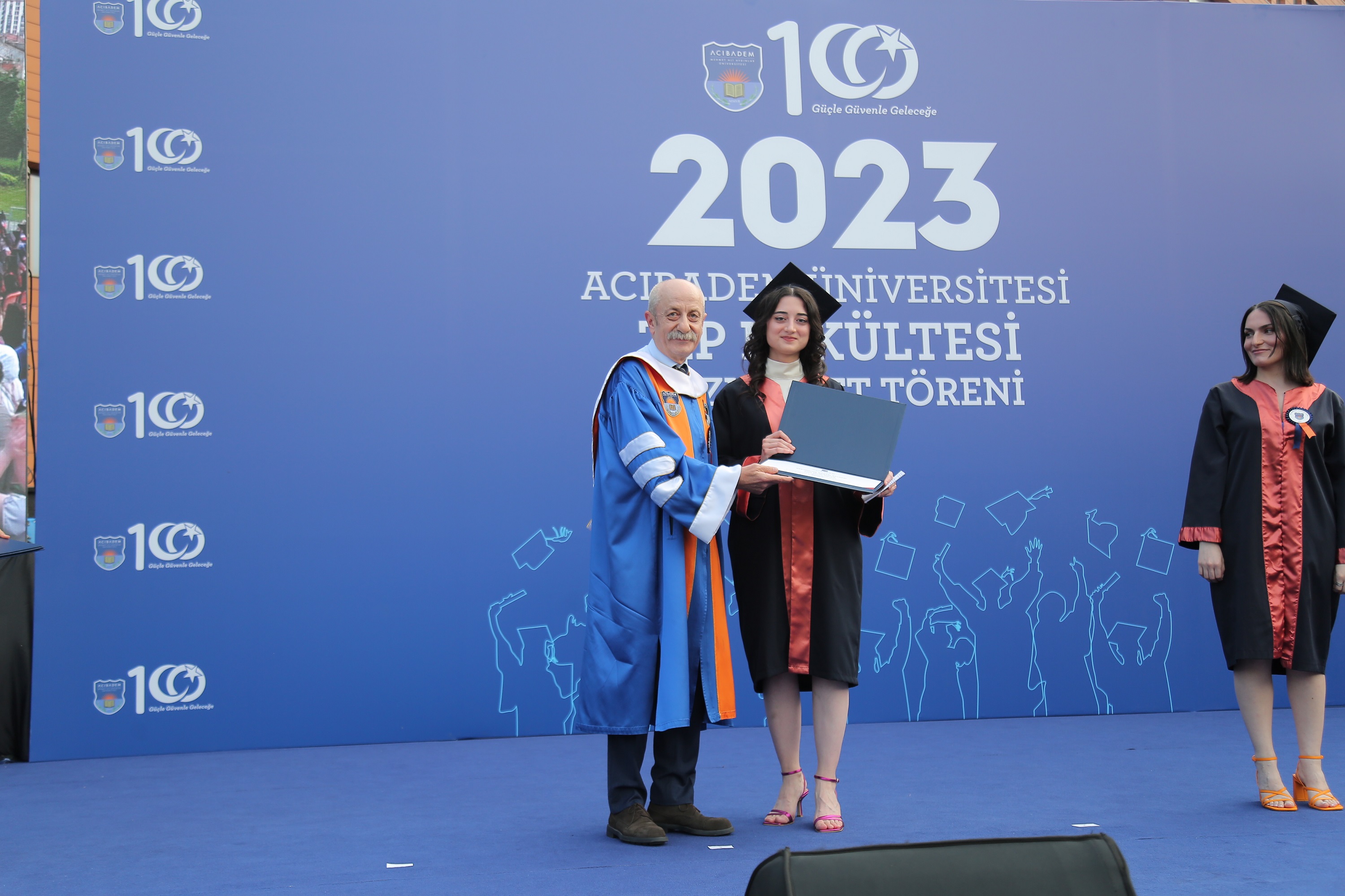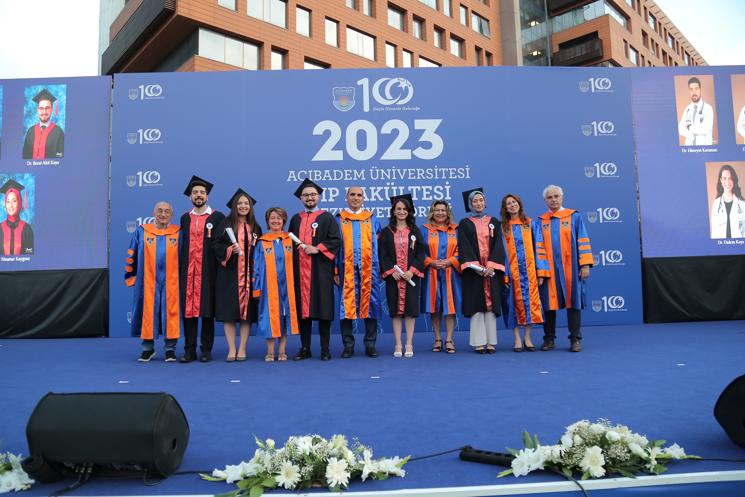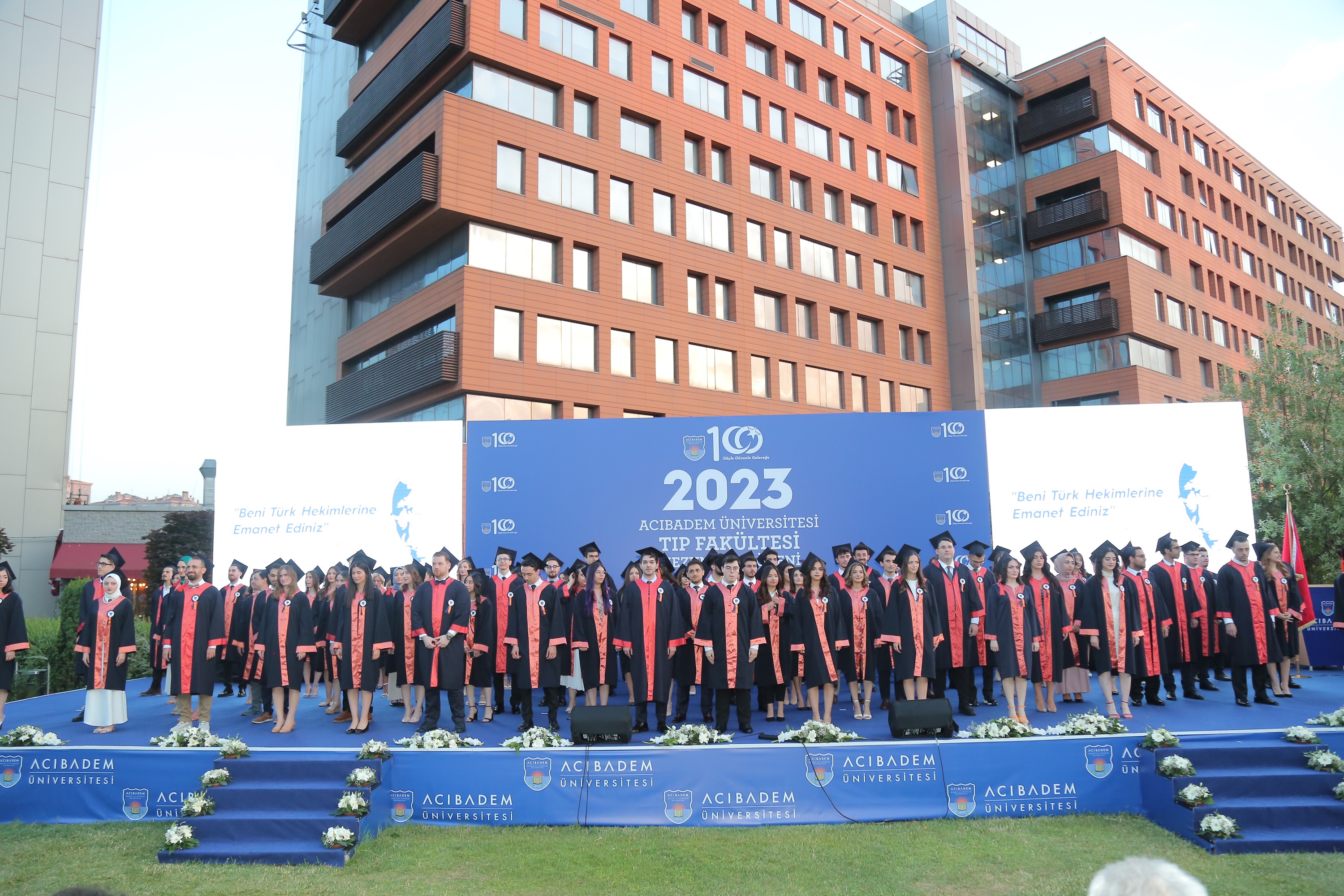 Subsequently, all the graduates were invited to the stage to receive symbolic diplomas. Our graduates, along with our Dean, Prof. Nadi Bakirci, recited the Physician's Oath, taking their first steps into the medical profession. The School of Medicine 2023 Graduation Ceremony concluded with the graduates throwing their caps into the air.
