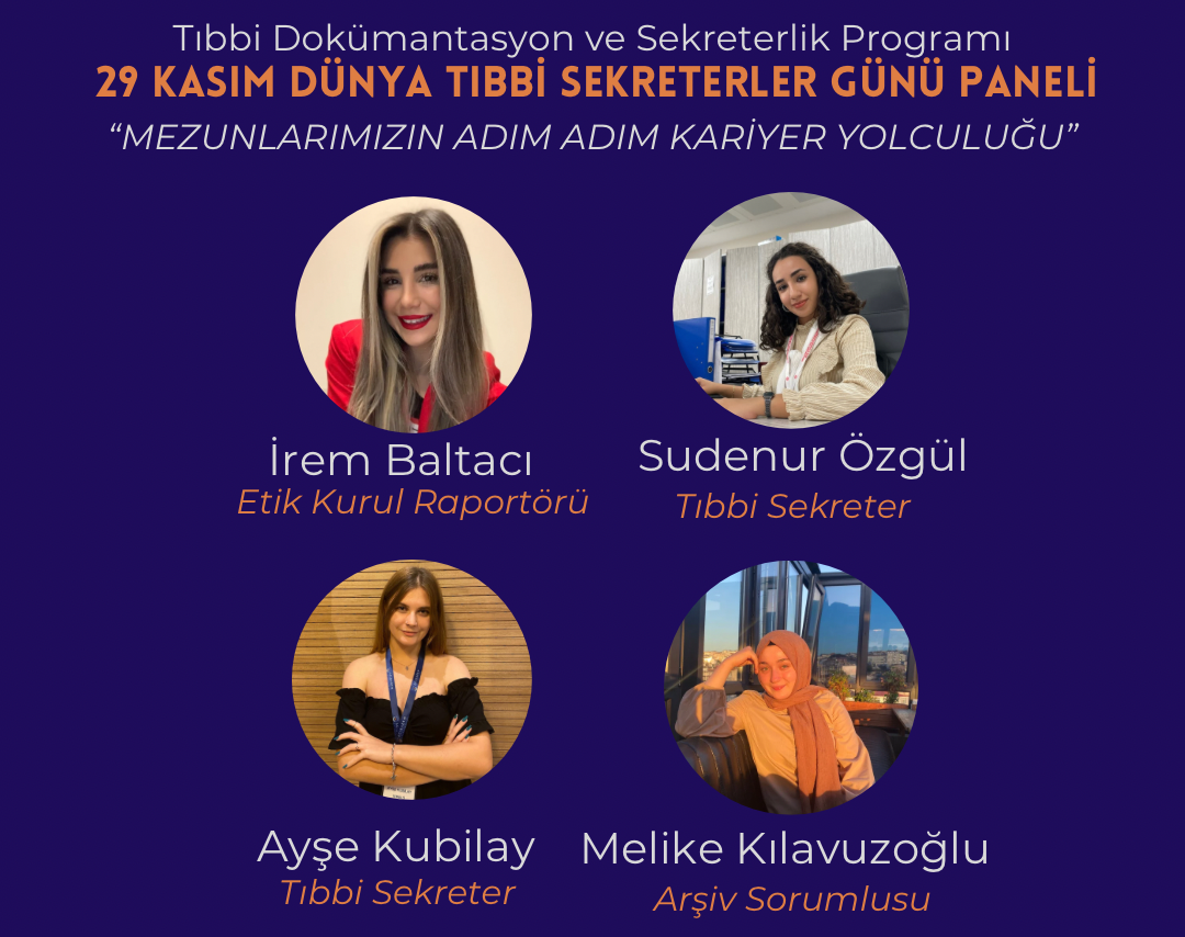 The event titled 'Step by Step Career Journey of Our Graduates,' organized by the Acıbadem University Health Services Vocational School's Medical Documentation and Secretarial Program, took place at our university on December 6, 2023. Organized as part of the celebration of the November 29 World Medical Secretaries Day, the event covered topics such as 'medical secretarial, career planning of graduates, career journey.' The experiences of the graduates on their career journey, the contributions of our university to this journey, the experiences during the choice processes, were shared with industry representatives and students. The event, which saw the participation of 51 people, ended with a question-and-answer session.