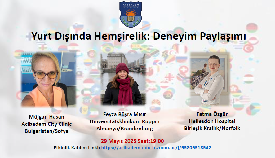 Speakers included Müjgan Hasan (Acıbadem City Clinic, Sofia), Feyza Büşra Mısır (Universitätsklinikum Ruppin, Brandenburg), and Fatma Özgür (Hellesdon Hospital, Norfolk). They offered in-depth information about the healthcare systems in which they work. Feyza Büşra Mısır and Fatma Özgür also emphasized how the education they received in the Acıbadem University Nursing Undergraduate Program contributed to their professional adaptation abroad.