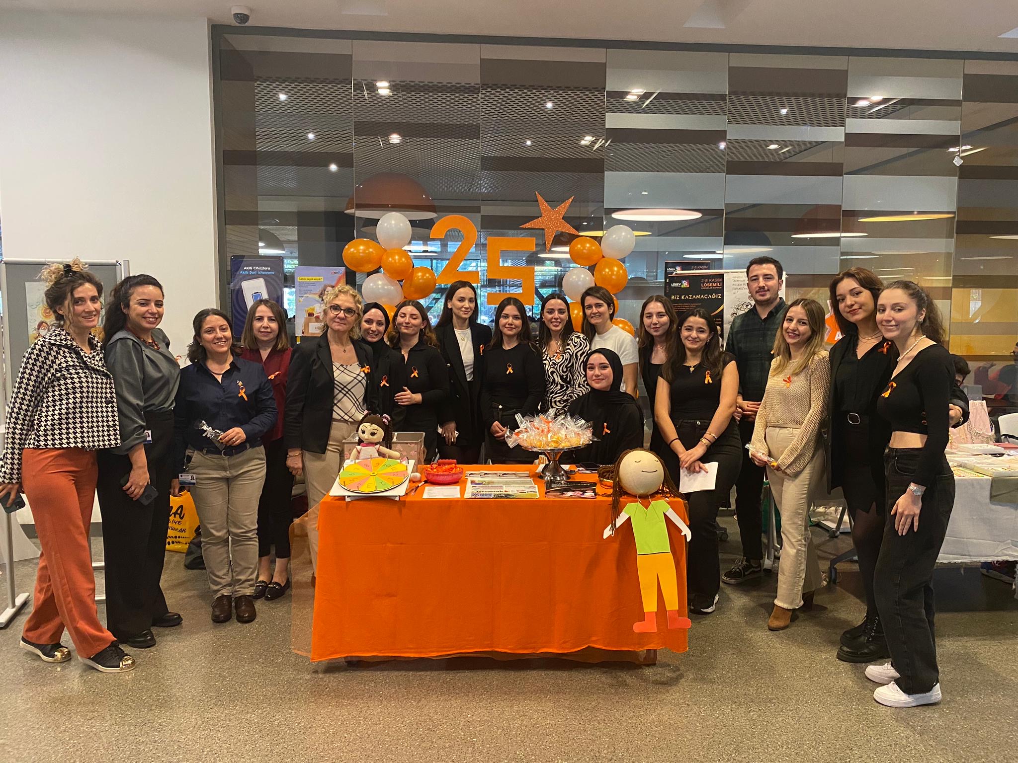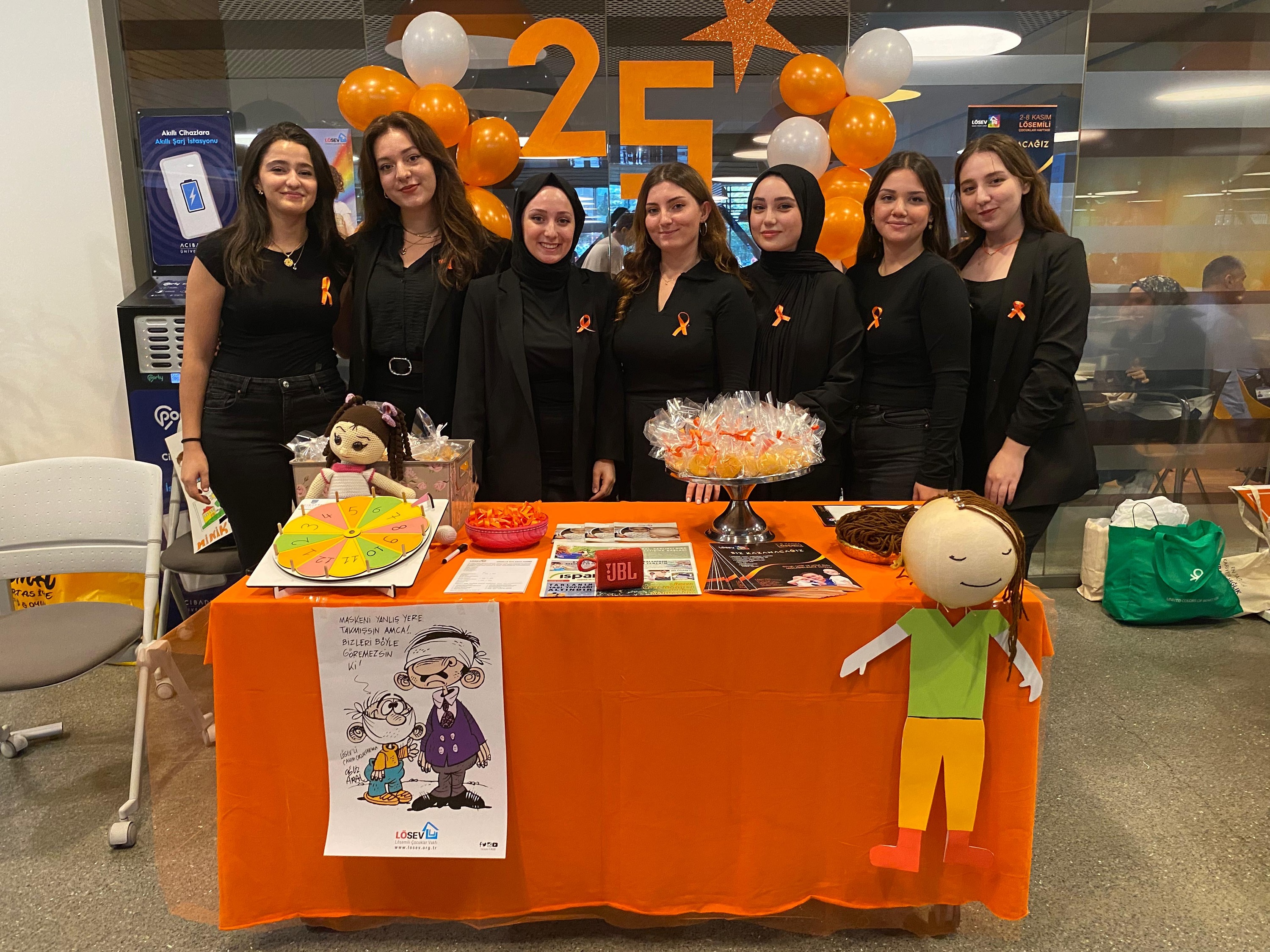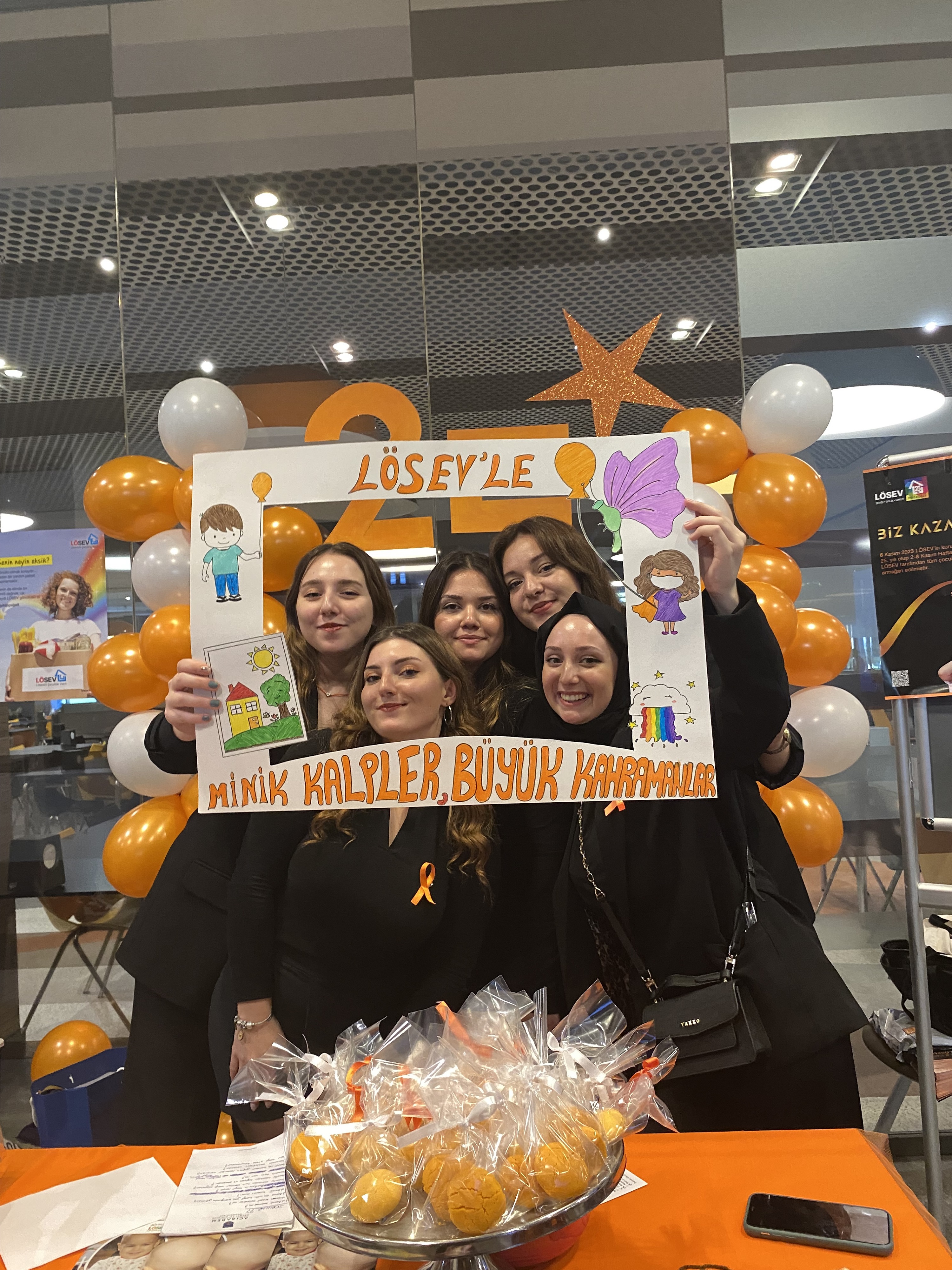 On November 6, 2023, fourth-year nursing students from the Acibadem University Nursing Department organized an event titled 'Tiny Hearts, Great Heroes with LOSEV.' Within the scope of the 2-8 November “ The Week for the Children with Leukemia , our fourth-year students Munevver Ulusu, Esra Dogru, Hamide Nur Tamer, Beyzanur Ozkaya, Emine Gumus, Melike Minaz, Sibel Kurban, and Sevval Karaboga, under the guidance of Assoc. Prof. Bahire Ulus, Assist. Prof. Azize Karahan, and Assist. Prof. Gozde Gur, set up a booth to raise awareness about leukemia. During the visit to the LOSEV booth, students and university staff were provided with information about leukemia, and a question wheel was used to engage participants, along with the distribution of gift cookies. An activity involving adding hair to a toy baby was conducted to draw attention to the treatment process in leukemia.