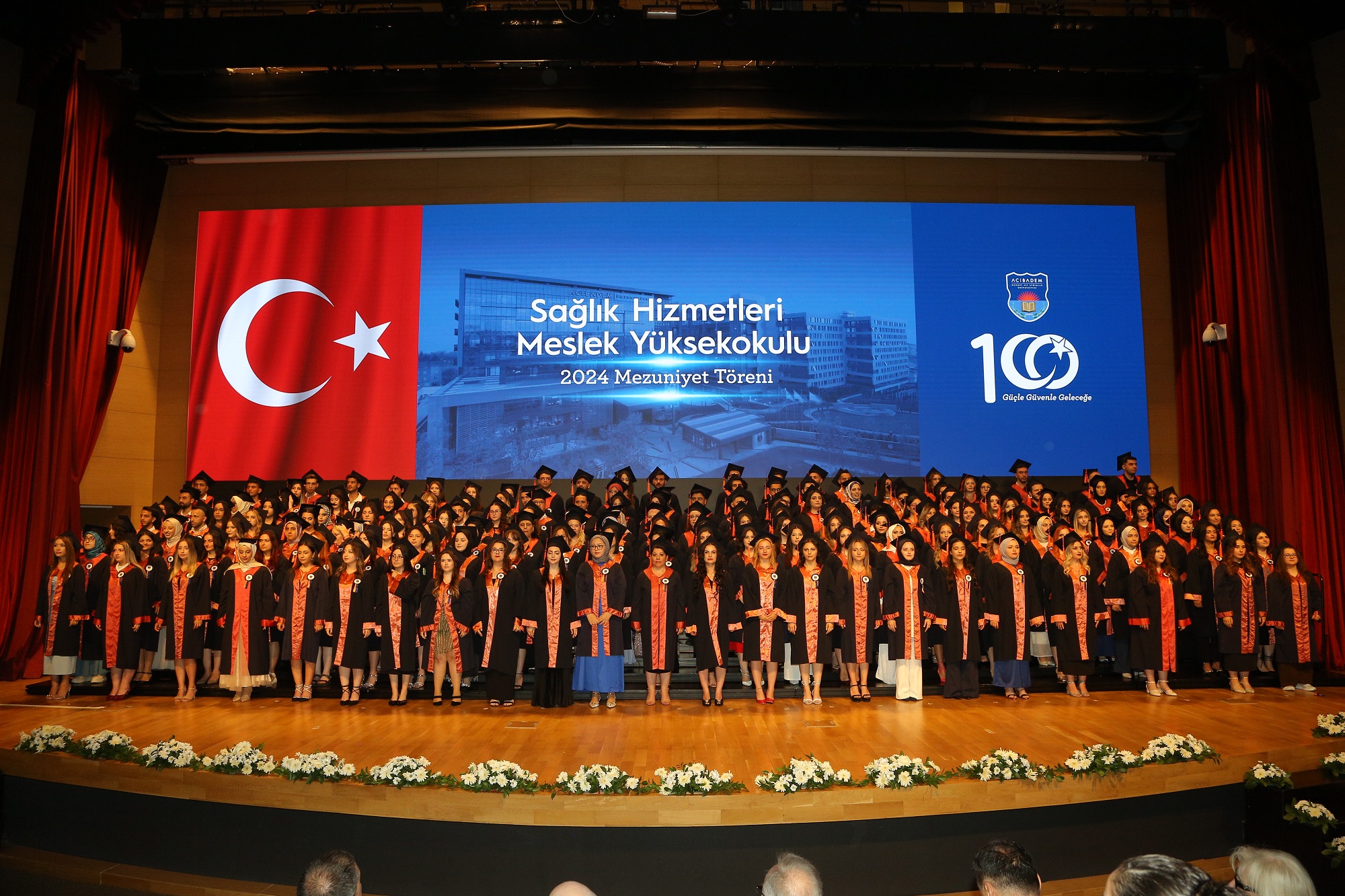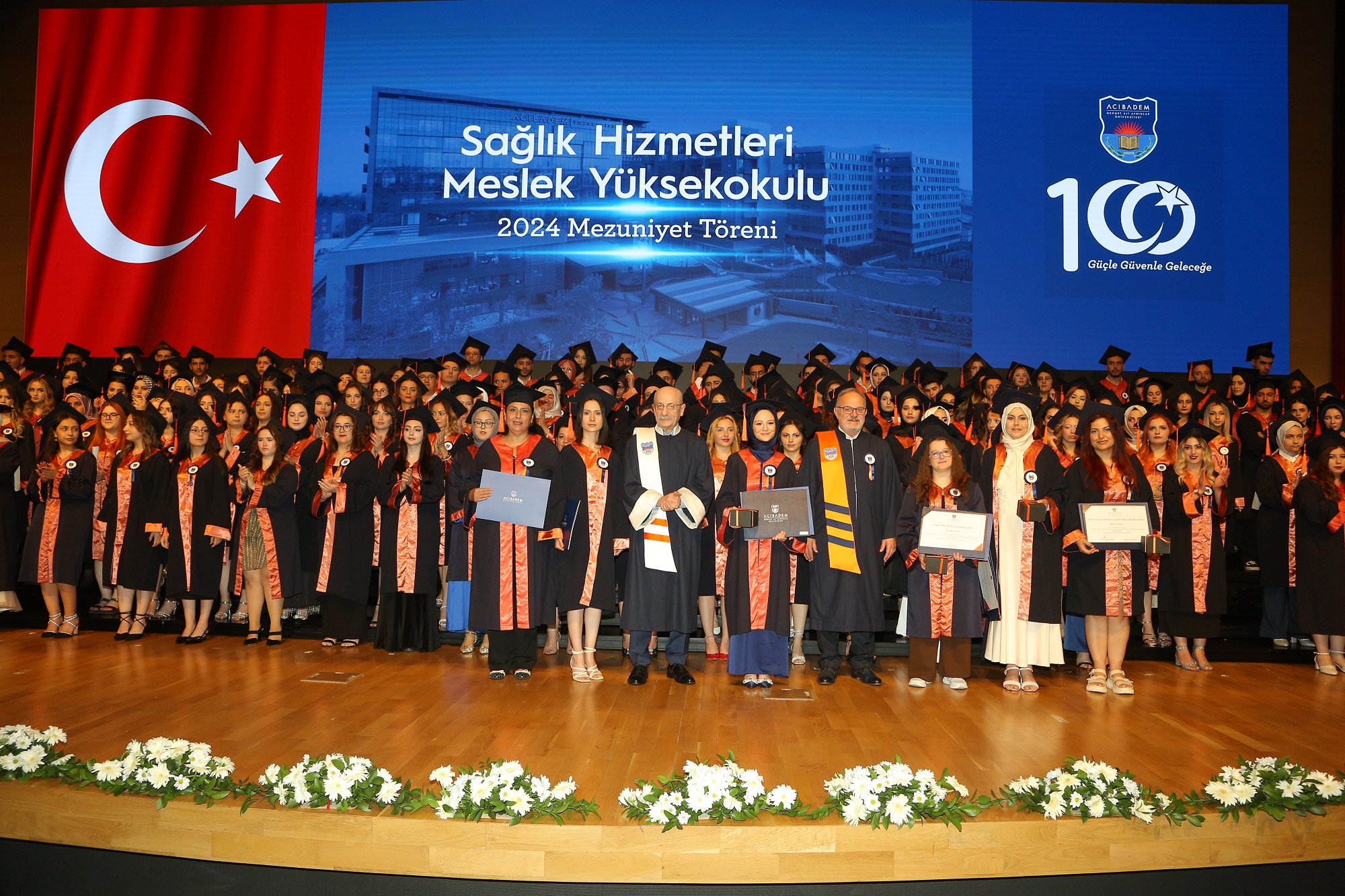 The Graduation Ceremony of the Vocational School of Health Services was held in three sessions at our university on June 28, 2023. The ceremonies commenced with opening speeches by our Director of the Vocational School of Health Services, Prof. M. Olcay Cizmeli, our Rector, Prof. Ahmet Sahin, and our Vice Rectors, Prof. Guldal Suyen and Prof. Irfan Guney. Dilara Gurcay, the top graduate of the Vocational School of Health Services, delivered a speech on behalf of the school.