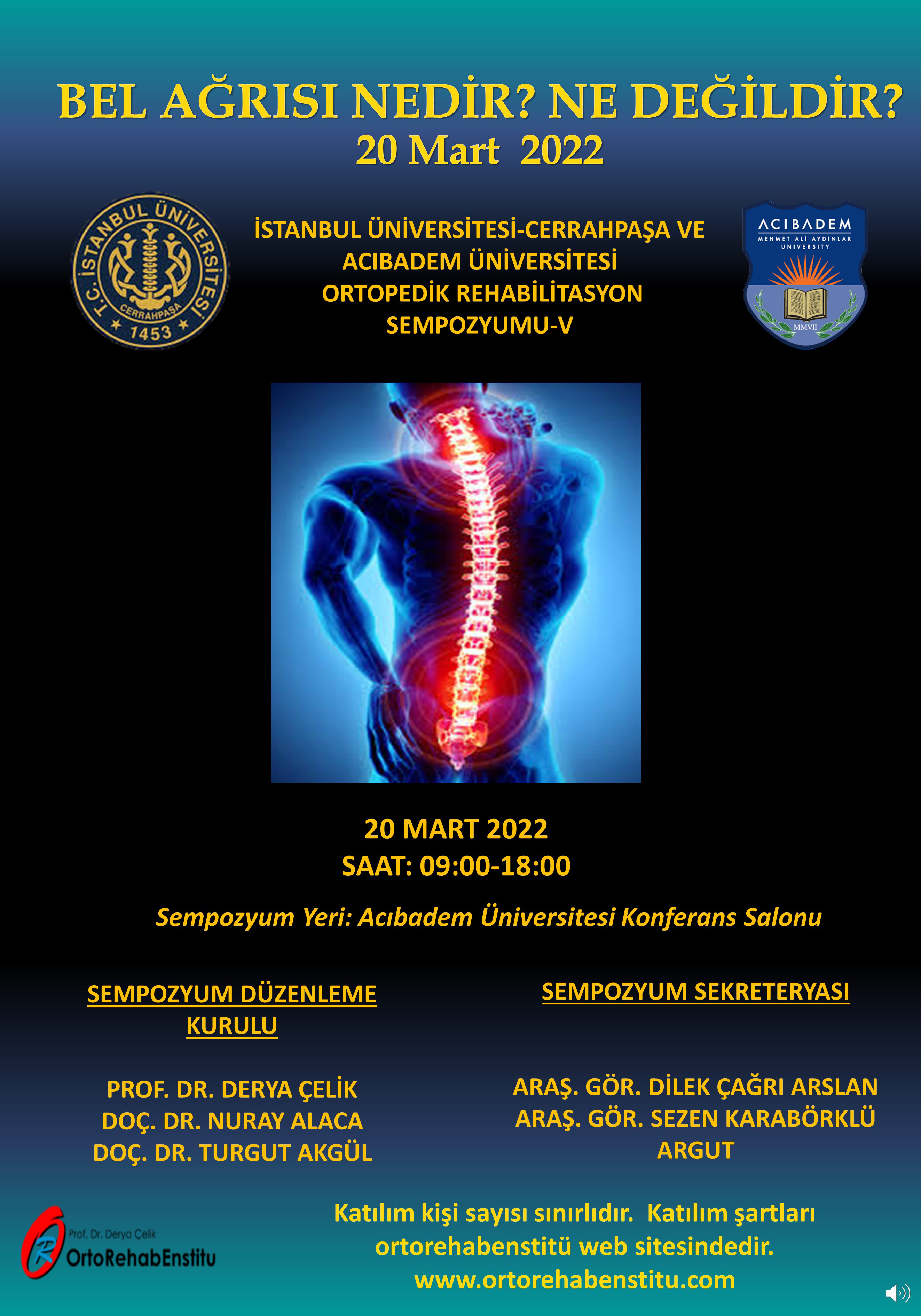 The “What is Back Pain? What is Not?” symposium was held on March 29, 2022, in collaboration with the Physiotherapy and Rehabilitation Departments of Istanbul University-Cerrahpaşa and Acıbadem Mehmet Ali Aydınlar University. The event addressed back pain and its rehabilitation from a multidisciplinary perspective.
