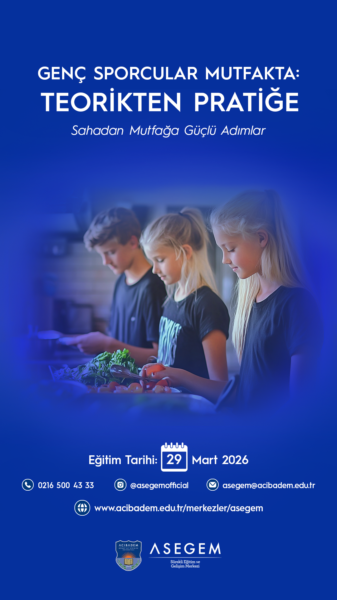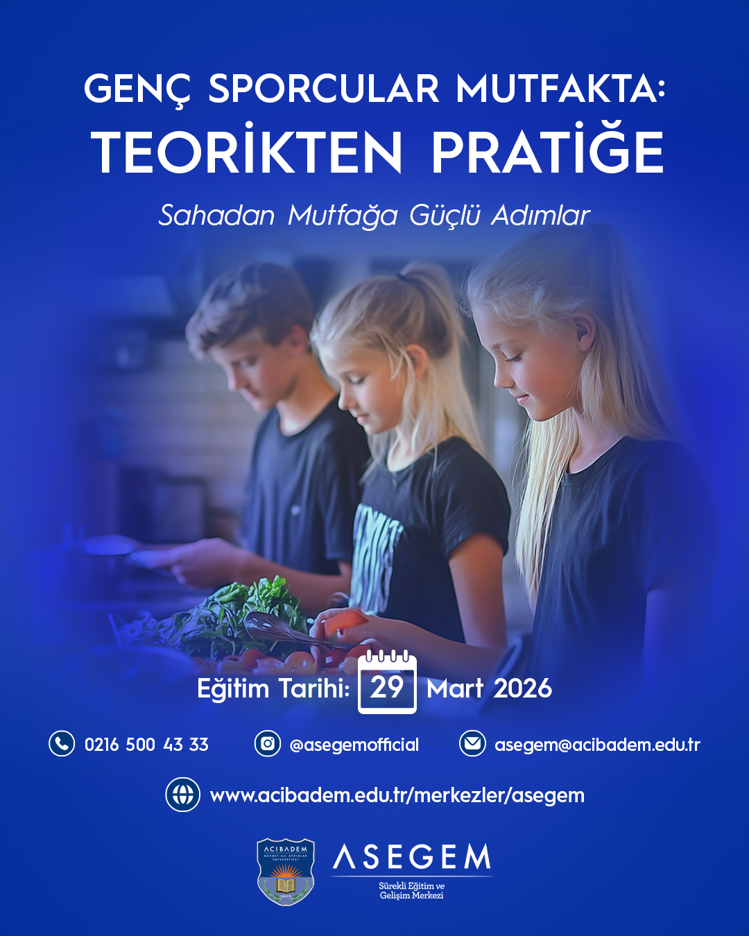 29 Mart 2026 tarihinde düzenlenecek “Genç Sporcular Mutfakta: Teorikten Pratiğe” Eğitimi, 12–18 yaş aralığında düzenli spor yapan gençlere yönelik uygulamalı bir sporcu beslenmesi eğitimidir.