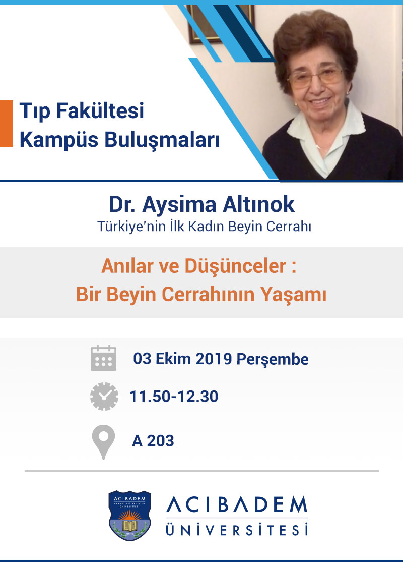 Dr. Aysima Altınok Özgemişi:1929 yılında Erzincan’da dünyaya geldi. İlkokulu Erzincan’da ortaöğrenimini İstanbul Kız Lisesinde tamamladı. İstanbul Üniversitesi Tıp Fakültesi’ni 1952’de bitirdi. Bir yıl Cerrahpaşa 3. Cerrahi Kliniği’nde Genel Cerrahi asistanlığından sonra Doç. Dr. Feyyaz Berkay ile Nöroşirürji Departmanının kuruluşundan itibaren üç yıl asistan eğitimi gördü. Üniversitede Nöroşirürji Kürsüsü kurulmadığı için 1956’da Sağlık Bakanlığı Haydarpaşa Numune Hastanesi’nde Op. Dr. Hami Dilek ve Op. Dr. Ertuğrul Saltuk yanında eğitimini tamamlayarak 1959 yılında uzman oldu. Türkiye’nin ilk kadın beyin cerrahı olan Aysima Altınok, Bakırköy Ruh ve Sinir Hastalıkları Hastanesi’nde göreve başladı ve klinik şefi olarak görevine devam etti. 1968’de Prof. Dr. Feyyaz Berkay ve Prof. Dr. Bülent Tarcan ile Türkiye’de ilk Nöroşirürji Cemiyeti kurucuları arasında yer aldı. İstanbul Tabip Odası üyeliği, İstanbul Cerrahi Derneği üyeliği, Nöropsikiyatri Derneği üyeliği, Bakırköy Akıl Hastanesi Vakfı kurucu üyeliği ve başkan yardımcılığı yaptı. 1990’da Sağlık Bakanlığı tarafından yılın en başarılı uzman hekimi seçildi. 1996 yılında Türk Nöroşirürji Derneği ve 1 Aralık 2005’de Beyin ve Sinir Cerrahisi Derneği’nin kuruluşunda onursal üyeliği vardır. 1992 yılında 38 yılı aşan resmi görevinden ayrıldı.