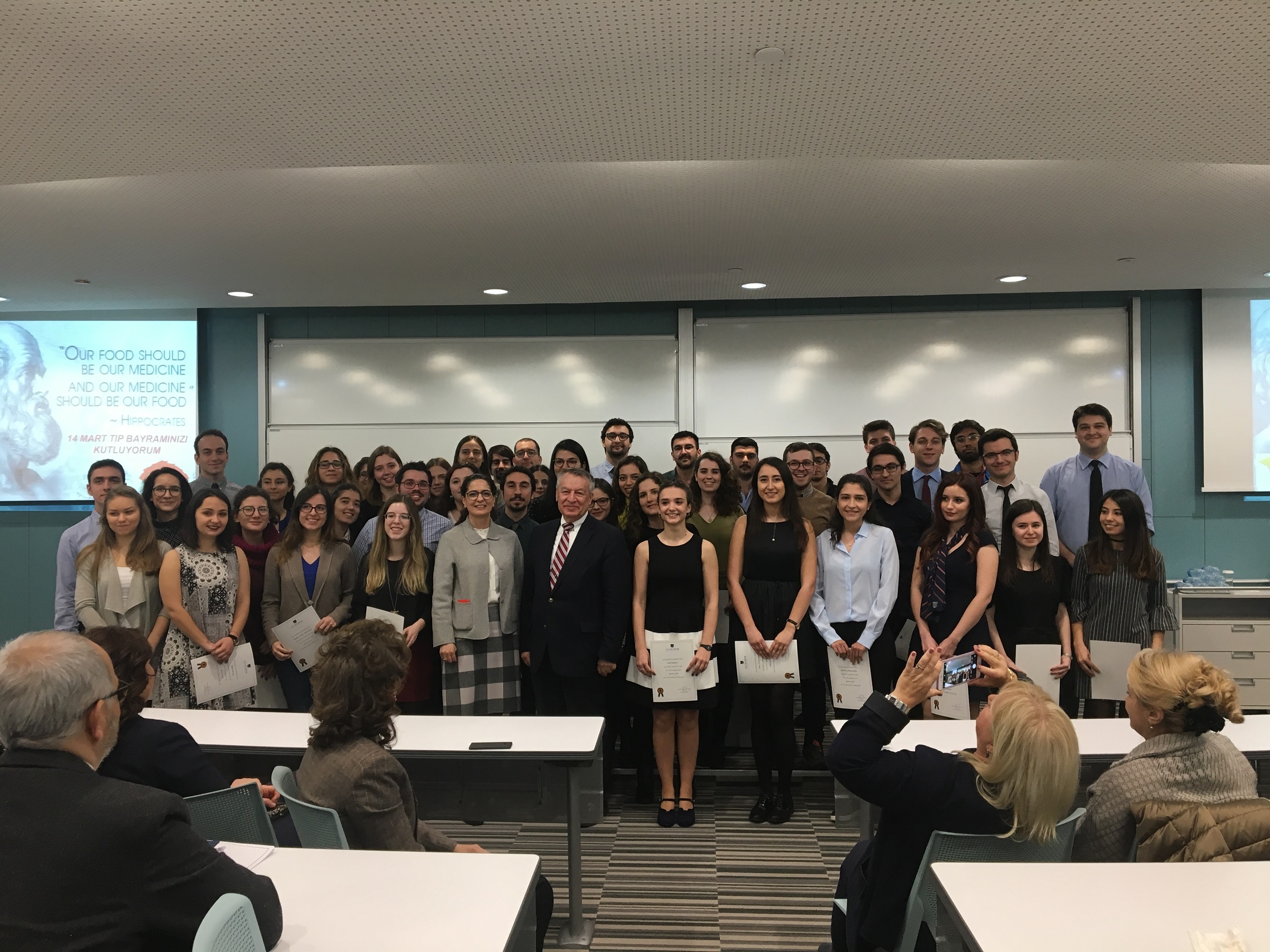 TÜBA Şeref Üyesi ve Uluslararası Hematoloji Derneği Başkanı Prof. Dr. Emin Kansu, Tıp Fakültesi Dekanlığı’nın konuğu olarak 14 Mart Tıp Bayramı Programı kapsamında öğrenciler ve akademisyenler ile bir araya geldi. Prof. Dr. Kansu “Akademik Mikroçevre” başlıklı sunumunda akademi ve öğrenciler arasındaki iletişimin nasıl olması gerektiğine yönelik önemli bilgiler paylaştı.Prof. Dr. Kansu’nun sunumu sonrası 2015-2016 Akademik Yılı’ndaki dönem ortalamaları ile Dekanlık Listesi’ne giren öğrencilere Tıp Fakültesi Dekanı Prof. Dr. Yasemin Alanay tarafından başarı beratları verildi.DEKANLIK LİSTESİ’NE GİREN ÖĞRENCİLER (SOYADINA GÖRE ALFABETİK):RANA ÇAĞLA AKDUMANEMRE AKGÜNBURAK AMİLABDULLAH ARCANAYGUN ASGARLIELİF BARANBERK BULUTTURGUT BORA CENGİZAYŞE ÇAMGÖRENECEM ASENA ÇUHADARECENUR İZZETE DERELİOĞLUBENGİSU GÜNERDAMLA GÜRLEYİKEZGİ GÜRTAYSİBEL EMILIE SULTAN HUETİLAYDA RANA İLGÜNNUR KAKİLLİORUÇ KELEŞKENT OZAN KESKİNPERİ KINDANMELİS KURŞUNEMİR MATPANLETİSYA MELENGİÇDERYA EMEL MOLDURDENİZ MUTLUECE NOKAYPINAR ÖZTEKİNBETÜL PİYADEONUR SAYLIKECENUR ŞAHİNİPEK ŞAKİRMEHMETCAN ŞENGÜLİREM ŞEVİKNİRAN TEKKELİEGE TOPALOĞLUERDİNÇ UYSALİZEL ÜSTÜNKOLMÜGE YALÇINMEHMET EFE YANIKDENİZ YANIKBESRA HAZAL YEŞİLCAN YILMAZYAĞIZ UĞUR YOLCUİLAYDA YÜCEL