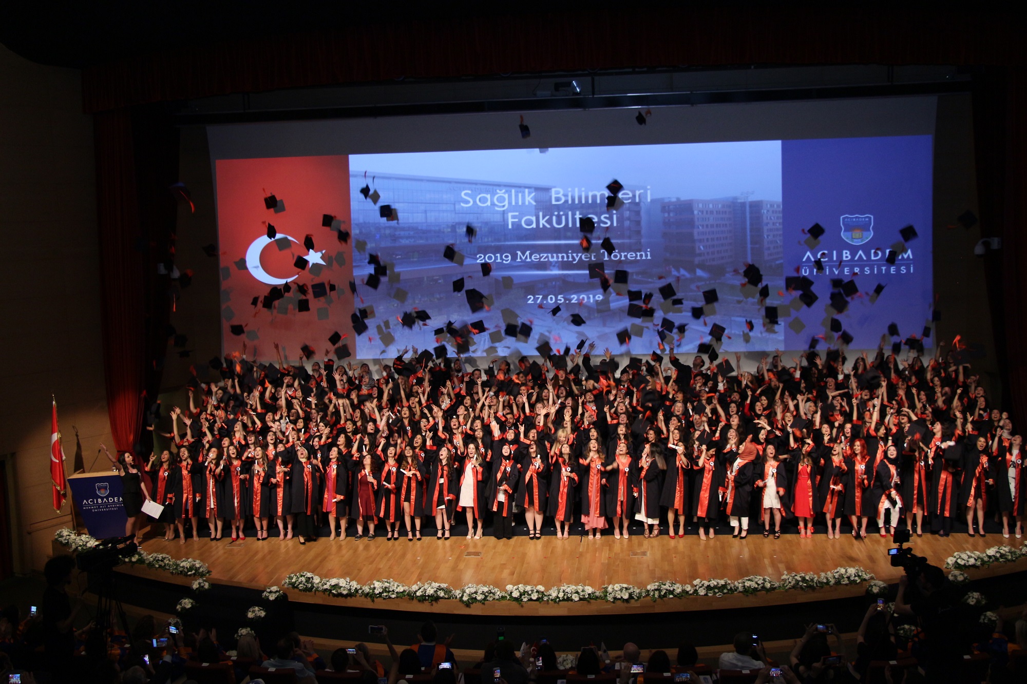 Sağlık Bilimleri Fakültesi 2019 Mezuniyet Töreni 27 Mayıs 2019 tarihinde Kerem Aydınlar Kampüsünde gerçekleşti.Sağlık Bilimleri Fakültesi Dekanı Prof. Dr. Murat Baş’ın açılış konuşması ile başlayan tören, Acıbadem Üniversitesi Rektörü Prof. Dr. Ahmet Şahin’in konuşması ile devam etti. Törende Sağlık Bilimleri Fakültesi’ni birincilik derecesi ile tamamlayan Fizyoterapi ve Rehabilitasyon Bölümü mezunu Nurşah Dikmen’e başarı beratı Acıbadem Üniversitesi Mütevelli Heyeti Üyesi ve Kerem Aydınlar Vakfı Başkanı Seher Aydınlar ve Zeynep Aydınlar tarafından verildi. Törende, bölümlerinde ilk üç dereceye giren mezunlara da beratları takdim edildi.