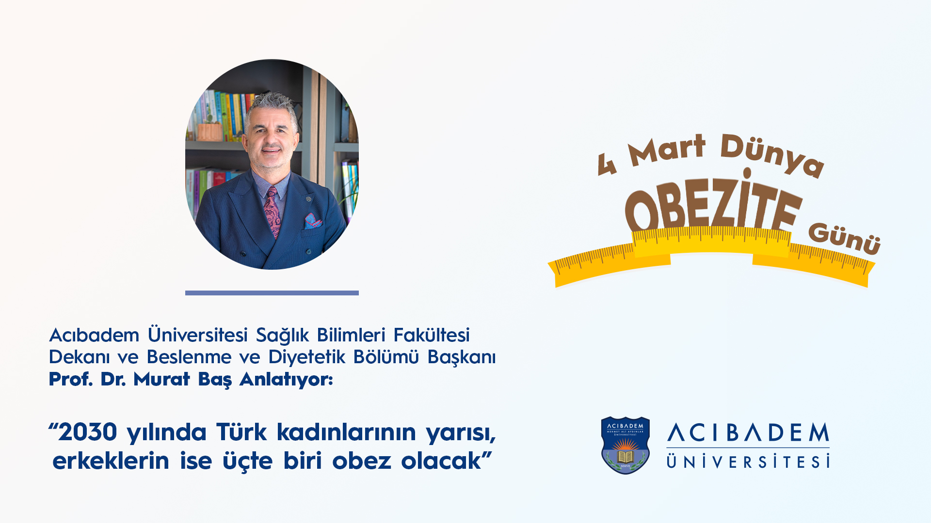 4 Mart Dünya Obezite Günü, bu büyüyen krize dikkat çekmek ve sistemsel değişimleri tartışmak için önemli bir fırsat sunuyor. Acıbadem Üniversitesi Sağlık Bilimleri Fakültesi Dekanı ve Beslenme ve Diyetetik Bölümü Başkanı Prof. Dr. Murat Baş, obezitenin sadece bireysel yemek tercihleriyle açıklanamayacak kadar karmaşık bir sorun olduğunu belirterek, “Kentleşme, teknolojik ilerlemeler, ekonomik eşitsizlikler ve gıda endüstrisinin yapısı, tüm dünya genelinde obezite oranlarının artmasında büyük rol oynuyor. Gündelik hareketliliğin azalması, ucuz ve sağlıksız gıdalara erişim kolaylığı, obeziteyi kaçınılmaz hale getiriyor” diyor.
