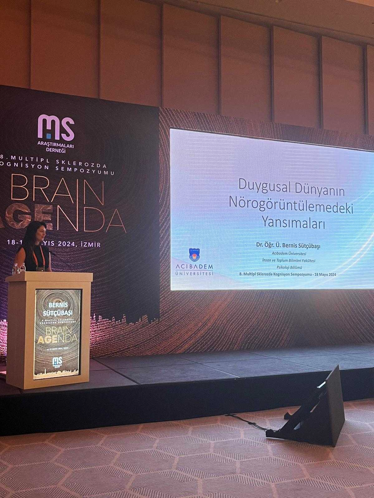 18-19 Mayıs 2024 tarihinde İzmir’de gerçekleşen 8. Multipl Sklerozda Kognisyon Sempozyumu’nda bölümümüz hocalarından Doç. Dr. Belma Bekçi ve Dr. Öğr. Üyesi Bernis Sütçübaşı da yer aldı. Bernis Sütçübaşı “Duygusal Dünyanın Nörogörüntülemedeki Yansımaları” üzerine sunum yaptı. İnteraktif olarak gerçekleşen etkinlik, katılımcıların soruların yanıtlanmasıyla sonlandı.
