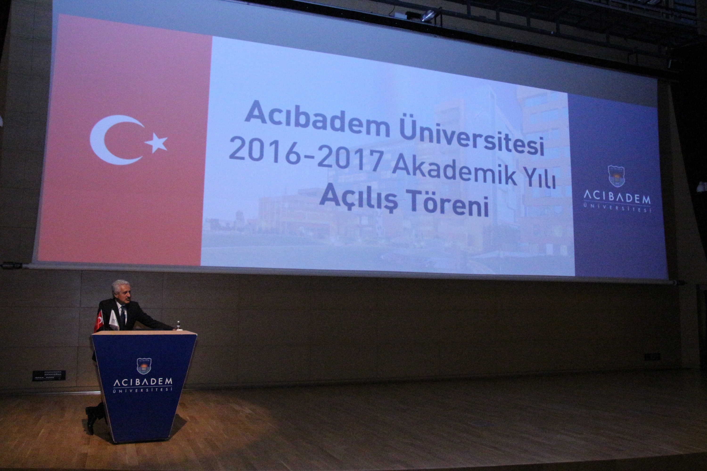 Acıbadem Üniversitesi 2016-2017 Akademik Yılı Açılış Töreni 21 Eylül 2016 Çarşamba günü Kerem Aydınlar Kampüsü Konferans Salonu’nda gerçekleşti. Törende Acıbadem Üniversitesi Öğrenci Konseyi Başkan Vekili Ömer Faruk Erdil, Rektör Prof. Dr. Ahmet Şahin ve Mütevelli Heyeti Başkanı Mehmet Ali Aydınlar konuşmalarını gerçekleştirdi. Tören Acıbadem Üniversitesi Tıp Fakültesi İç Hastalıkları Anabilim Dalı Başkanı Prof. Dr. Nurdan Tözün’ün “Tıp Biliminde Çığır Açan Gelişmeler ve Gelecek” başlıklı açılış dersi ile sona erdi.Acıbadem Üniversitesi Öğrenci Konseyi Başkan Vekili Ömer Faruk Erdil törende yaptığı konuşmada “Geleceğin üniversite mezunu aydın bireyleri olarak ülkemizin sosyal, kültürel ve ekonomik kalkınmasında bizlere çok iş düştüğünü biliyor ve bu konuda çok çalışacağımıza söz veriyoruz. Bu anlayış ile ülkemize milletimize ve tüm insanlığa faydalı bireyler olma yolunda kararlıyız” dedi.Acıbadem Üniversitesi Rektörü Prof. Dr. Ahmet Şahin de, üniversitenin kuruluşunda çok büyük bir hedefle yola çıktıklarını ve ‘dünyanın en iyisi’ olma hedefine hızlı adımlarla ilerlediklerini vurguladı. Bu yıl öğrenci sayısının 3 bin 700’e ulaştığını belirten Prof. Dr. Ahmet Şahin “Acıbadem Üniversitesi sağlığa odaklanmış bir üniversite. Hedefimiz Türkiye’de ve dünyada en iyisi olmak! En iyi sağlık profesyonelini, doktoru, hemşireyi, eczacıyı, sağlık teknisyenini yetiştirerek mesleğe hazırlamayı hedefliyoruz” derken öğrencilere “Acıbadem Üniversitesi’nden en iyisi olarak yetişip iş hayatına atılacaksınız. Siz de hedeflerinizi hiçbir zaman küçük koymayın. Biz nasıl sağlık alanında dünyanın en iyi üniversitesi olmayı hedefliyorsak sizin de hedefleriniz buna paralel olmalı” mesajını verdi.Acıbadem Üniversitesi Mütevelli Heyeti Başkanı Mehmet Ali Aydınlar törende yaptığı konuşmada; 25 yıllık Acıbadem kültürünü yükseköğretime taşıyan Acıbadem Üniversitesi’nin dünyanın sayılı üniversitelerinden biri haline gelmesini hedeflediklerini belirtti.Acıbadem Üniversitesi’nin akademik, sosyal imkanları ve güçlü akademik kadrosu ile dünya standartlarında eğitim veren bir üniversite olduğunu vurgulayan Mehmet Ali Aydınlar öğrencilere seslenerek, “Son iki yıldır sadece Acıbadem Üniversitesi öğrencileri Acıbadem Sağlık Grubu’nun modern, çok gelişmiş hastanelerinde staj ve uygulama yapma imkanları buluyor. Amacımız; sizlerin iyi birer meslek sahibi olmanızı sağlamak ve topluma iyi yetişmiş, nitelikli sağlık profesyonelleri kazandırmak. O halde sizler de çalışmalısınız, çok çalışmalısınız, daha çok çalışmalısınız” diye konuştu.Acıbadem Üniversitesi’nin gelenekselleşen açılış dersini bu yıl Acıbadem Üniversitesi Tıp Fakültesi İç Hastalıkları Anabilim Dalı Başkanı Prof. Dr. Nurdan Tözün verdi. Prof. Dr. Nurdan Tözün “Tıp Biliminde Çığır Açan Gelişmeler ve Gelecek” başlıklı sunumunda öğrencilere çiçek aşısından organ nakillerine geçmişten geleceğe bilime ışık tutan çarpıcı buluşları anlattı.