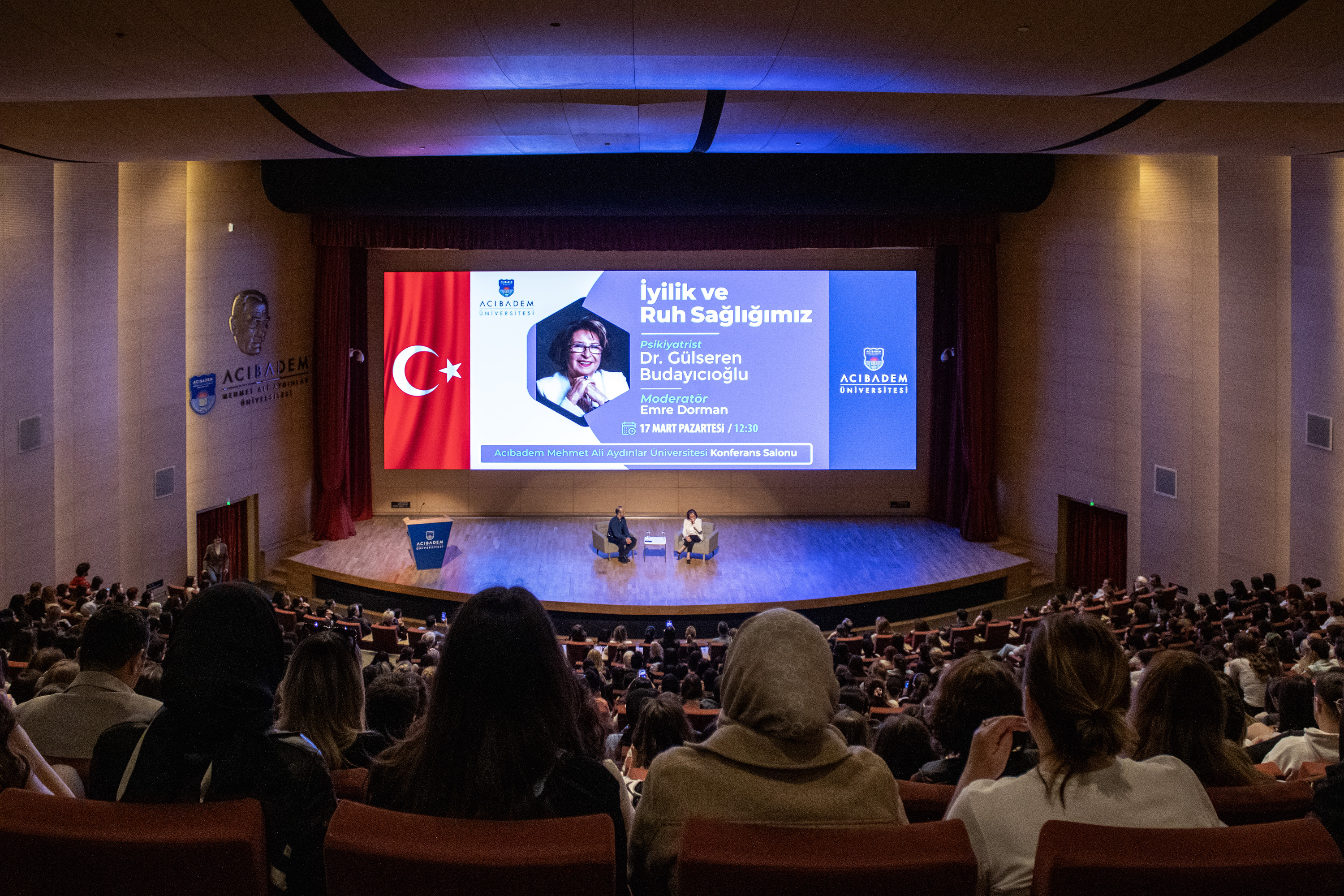 Acıbadem Üniversitesi, alanında uzman isimleri öğrencilerle buluşturmaya devam ediyor. 17 Mart Pazartesi günü gerçekleştirilen “İyilik ve Ruh Sağlığımız” başlıklı söyleşide, ünlü psikiyatrist ve yazar Dr. Gülseren Budayıcıoğlu, iyi olmanın bedelleri ve güzellikleri üzerine önemli paylaşımlarda bulundu.