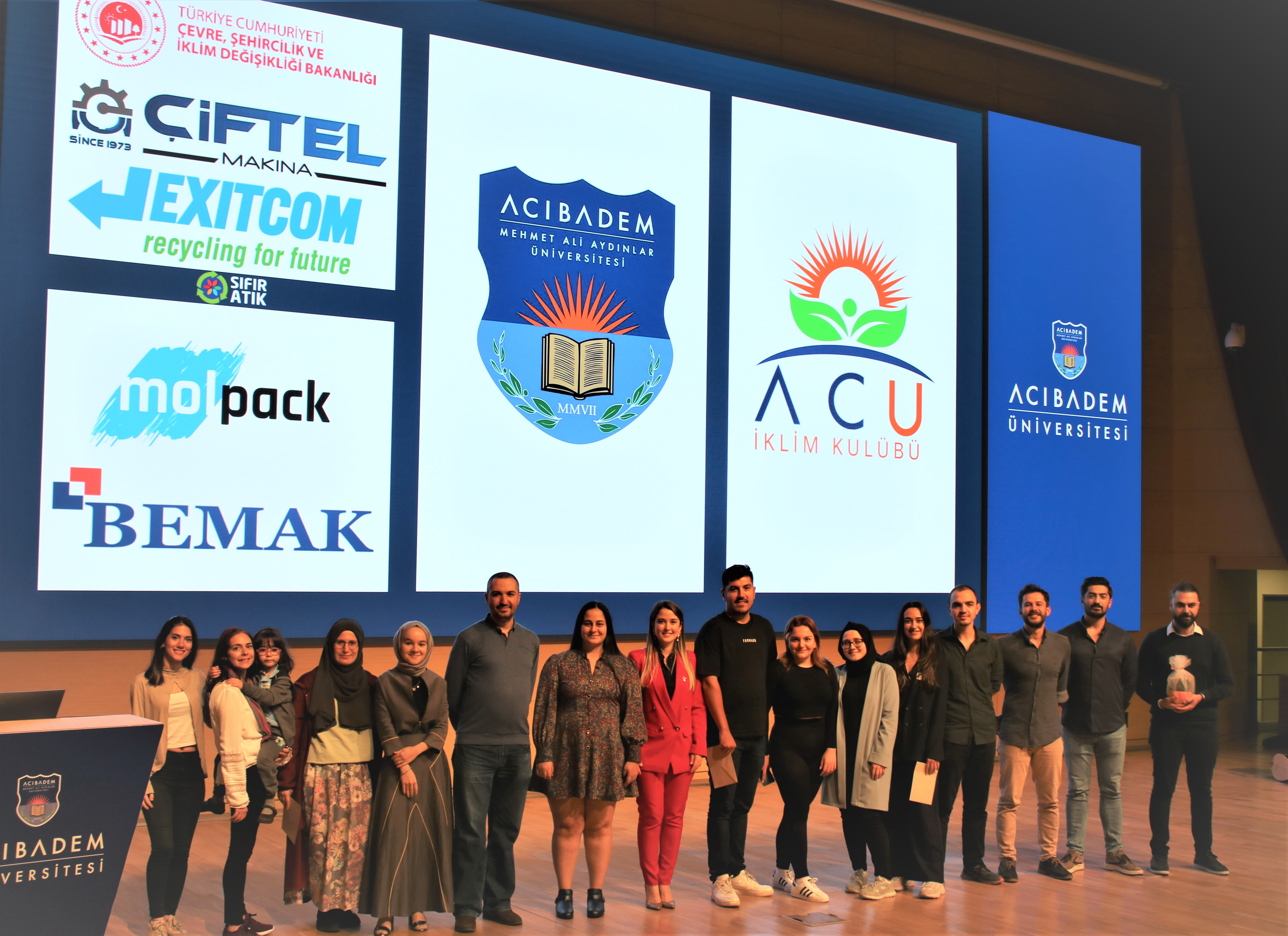 ACU İklim Kulübümüzün EXITCOM Geri Dönüşüm Şirketi iş birliği ile “Sıfır Atık Akımı” adını verdiğimiz bir akım başlatmak amacıyla düzenlediği etkinlik 13 Ekim 2022 tarihinde konferans salonumuzda gerçekleşti.Üniversitemizden Mühendislik ve Doğa Bilimleri Fakültesi Moleküler Biyoloji ve Genetik Bölümü Başkan Yardımcısı Dr. Öğretim Üyemiz Zeynep Tokcaer Keskin’in, Sağlık Bilimleri Enstitüsü Moleküler Biyoloji ve Genetik Bölümü yüksek lisans öğrencimiz ve aynı zamanda İklim Elçimiz Özdeyiş Hülya İşgördü’nün ve Sağlık Bilimleri Enstitüsü Medikal Biyoteknoloji Programı doktora öğrencimiz Tayyip Karaman’ın konuşmalarını gerçekleştirdiği etkinlikte; EXITCOM Recycling Geri Dönüşüm Ltd. Şti. firma sahibi Murat Ilgar, İklim Değişikliği Politika ve Araştırma Derneği Yönetim Kurulu Yetkilisi Tekin Altuğ ve Çevre Şehircilik ve İklim Değişikliği Bakanlığı Ankara Müzik ve Güzel Sanatlar Üniversitesi İklim Elçisi Veysel Gökçek de konuşmacı olarak ağırlandı.Çok sayıda kişinin katılımıyla gerçekleşen etkinlikte Metagenome analizleri ile iklim değişikliği kriziyle mücadele uyum çalışmalarında atılabilecek adımlar, elektronik atık ve önemi, mikroalgler ve iklim değişikliği kriziyle mücadele, karbon ayak izi konu başlıkları üzerine konuşuldu.Toplanan atıklardan elde edilen gelir ile ihtiyaç sahibi okullara kütüphane ve laboratuvar desteği vermeyi amaçlayan E-Atık Toplama Etkinliği iklim değişikliği temalı müzik dinletisinin ardından sona erdi.İlk adımını üniversitemizin attığı etkinliğin ikincisi Erzurum’da gerçekleşecek.
