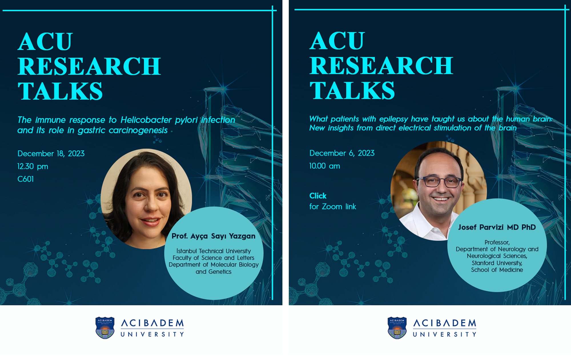 Araştırma temalı sunumların, araştırma altyapısı ve olanakları ile ilgili konuşmaların, kurum içi ve dışından davetli araştırmacıların konferanslarının, kısacası araştırma ile ilgili her konunun yer aldığı ACU Research Talks, Aralık ayında da alanında uzman konuşmacıları ağırladı.