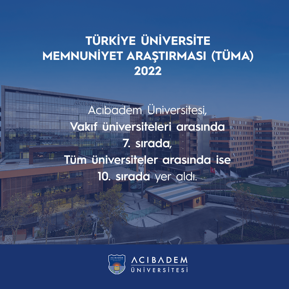 Türkiye Üniversite Memnuniyet Araştırması (TÜMA) 2022 kapsamında Acıbadem Üniversitesi, vakıf üniversiteleri arasında 7. sırada yer alırken, tüm üniversitelerin genel memnuniyet sıralamasında ise 10. sırada yer aldı.