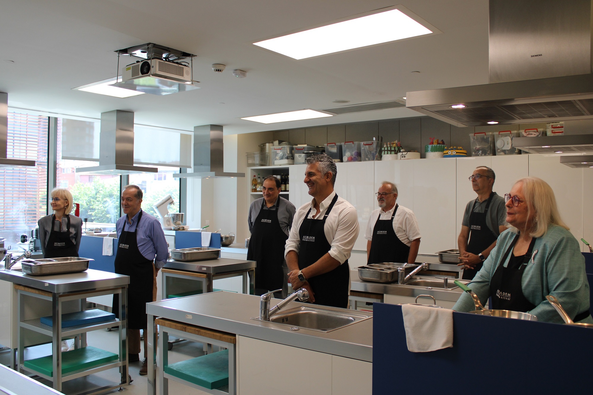 Acıbadem Üniversitesi Aşçılık Programı tarafından 11 Temmuz 2023 tarihinde, mutfak atölyesi etkinliği düzenlendi. Atölyede Rektör Yardımcılarımız Prof. Dr. Güldal SÜYEN ve Prof. Dr. İrfan Güney ile Meslek Yüksekokul Müdürü Doç. Dr. Emin Aksoy, Sağlık Bilimleri Fakültesi Dekanı ve Beslenme ve Diyetetik Bölüm Başkanı Prof. Dr. Murat BAŞ, İnsan ve Toplum Bilimleri Fakültesi Dekanı Prof. Dr. İnci USER, Eczacılık Fakültesi Dekanı Prof. Dr. Mert ÜLGEN ve Sağlık Hizmetleri Meslek Yüksekokulu Müdürü Prof. Dr. Olcay ÇİZMELİ, Aşçılık Programı eğitmen şefleri tarafından düzenlenen menüleri uygulamalı olarak deneyimlediler.
