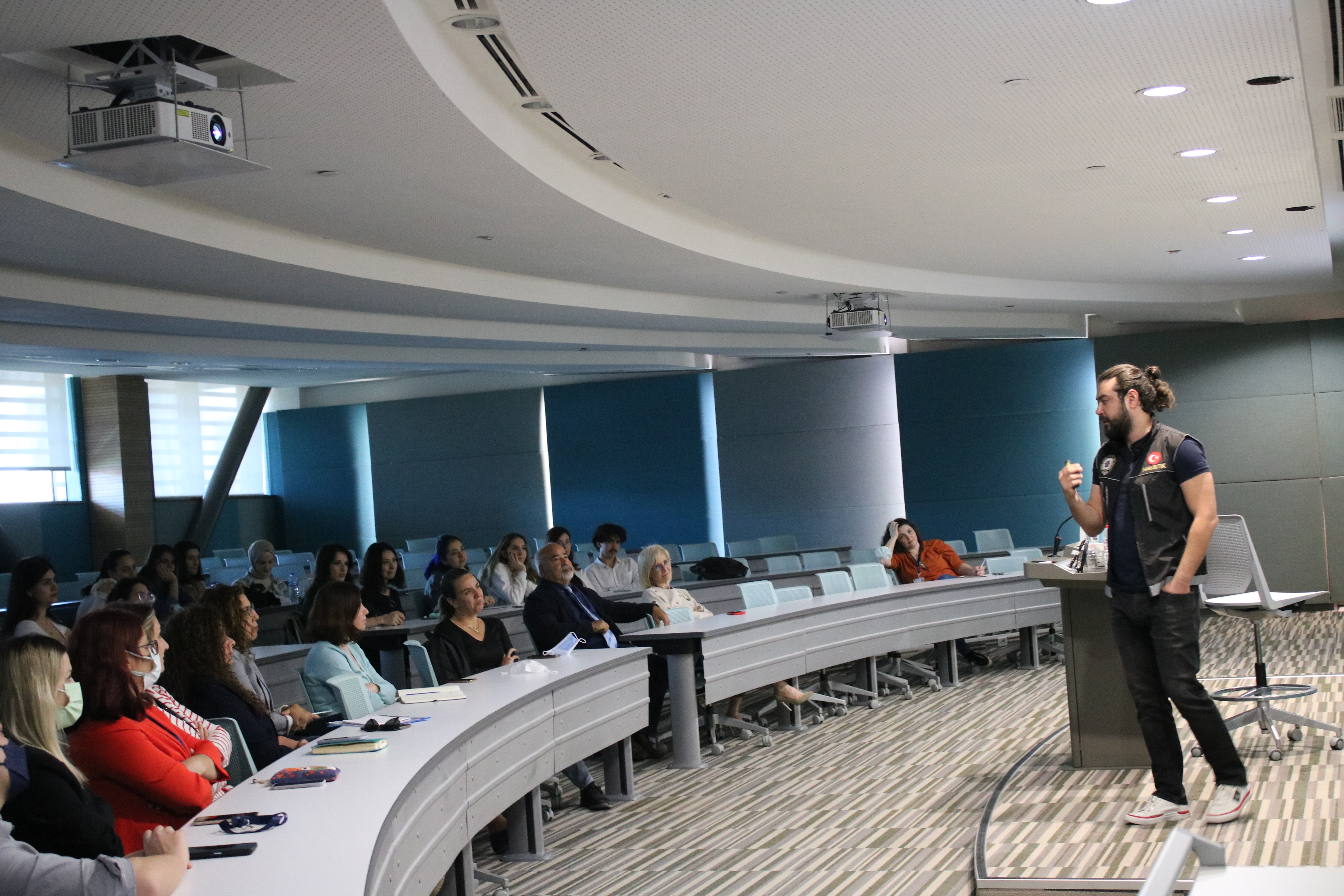 Üniversitemiz Bağımlılıkla Mücadele Komisyonu’nun, uyuşturucuyla mücadele kapsamında öğrencilere, akademik ve idari personele farkındalık sağlamak amacıyla İstanbul Emniyet Müdürlüğü Narkotik Şube iş birliği ile düzenlediği “Uyuşturucuyla Mücadele” başlıklı konferans 13 Mayıs 2022 tarihinde gerçekleştirildi.Tıp Fakültesi Adli Tıp Anabilim Dalı ve Bağımlılıkla Mücadele Komisyonu Başkanı Prof. Dr. Oğuz Polat’ın açılış konuşmasıyla başlayan etkinlikte Narkotik Suçlarla Mücadele Şubesi’nden Türkiye Uyuşturucu ve Uyuşturucu Bağımlılığı İzleme Merkezi Büro Amirliği Personeli, Polis Memuru Okan İlhan konuşmacı olarak ağırlandı.Sunumunda “Bağımlılık”, “Uyuşturucu ve Uyarıcı Madde”, “Uyuşturucunun Hukuktaki Yeri” ve “Uyuşturucunun Olumsuz Etkilerinin Örnekleri” gibi konu başlıklarına değinen İlhan, katılımcıları uyuşturucu ve uyarıcı maddenin hukuktaki cezai yükümlülükleri ve narkotik şubenin işleyişi hakkında da bilinçlendirdi.Etkinlik kapsamında uyuşturucuyla mücadele için sivil toplumun neler yapabileceğinden bahseden İlhan, katılımcıların sorularını da cevaplandırdı.