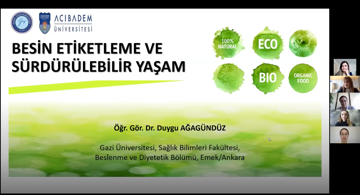 Sağlık Bilimleri Fakültesi Beslenme ve Diyetetik Bölümümüz tarafından düzenlenen Gazi Üniversitesi Sağlık Bilimleri Fakültesi Beslenme ve Diyetetik Bölümü Öğr. Gör. Dr. Duygu Ağagündüz’ün konuk olduğu Besin Etiketleme ve Sürdürülebilir Yaşam başlıklı etkinlik 26 Nisan 2021 tarihinde çevrim içi olarak gerçekleşti.Besin etiketlerinin okunmasında farkındalık sağlama ve günümüzde oldukça dikkat çeken bir konu olan sürdürülebilir yaşamı beslenme dahil farklı yönlerle ele almayı amaçlayan etkinlikte Öğr. Gör. Dr. Ağagündüz, çalıştığı farklı alanları ve gelecekte daha da önemli hale gelebilecek sürdürülebilir yaşamın etkilerini öğrenciler ile paylaştı. Etkinliğe Beslenme ve Diyetetik Bölümü öğrencileri ve konuya ilgi duyan diğer üniversite öğrencileri katılım gösterdi. Etkinlik katılımcıların sorularının cevaplanmasıyla sona erdi.