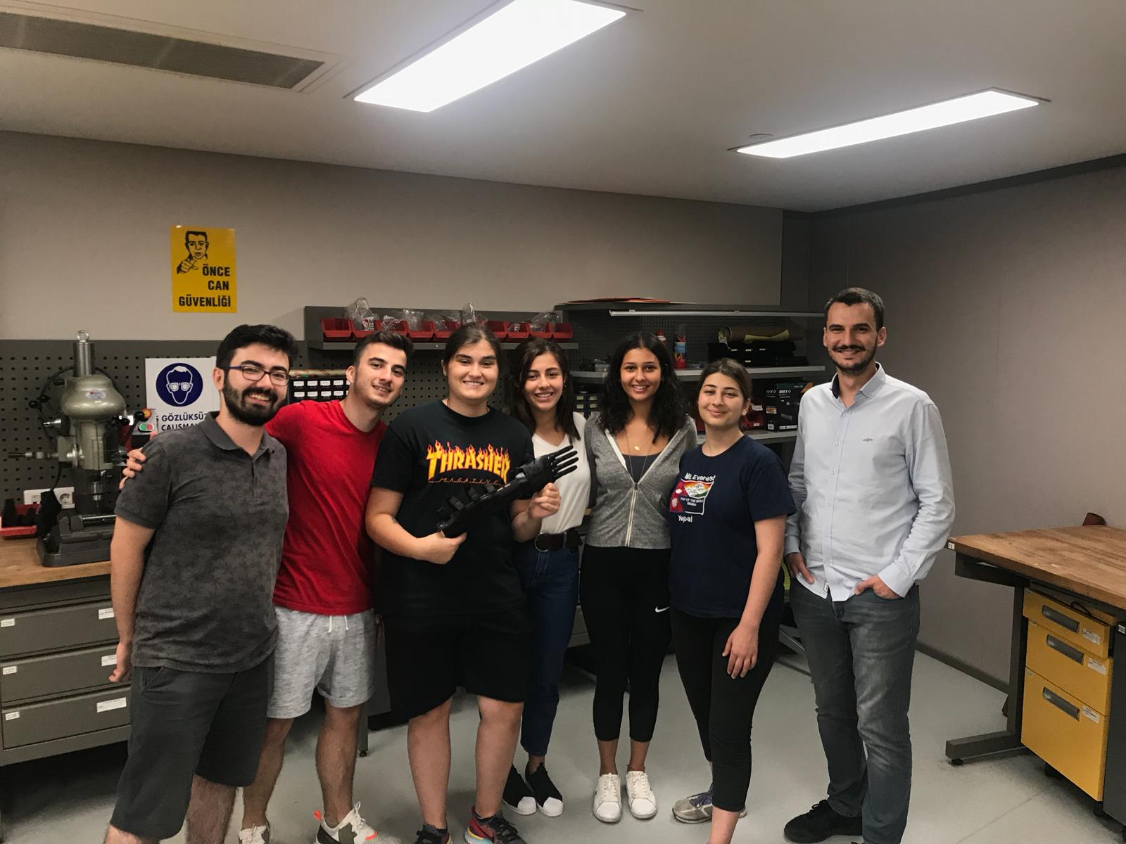 Acıbadem Üniversitesi Biyotasarım Merkezi çatısı altında uzmanlar ve öğrencilerden oluşan proje grupları ihtiyacı karşılamaya yönelik “robotel” tasarlıyor.Acıbadem Üniversitesi Biyotasarım Merkezi, Robot El Derneği ile iş birliği kapsamında parmak ve el deformasyonu nedeniyle proteze ulaşamayan veya kullanamayan gelişim dönemindeki ABS (Amniotic Band Syndrome) sendromlu çocuklara kişiye özel ölçü ve niteliklerde 3 boyutlu yazıcılarla üretilmiş, ekonomik ve kullanılabilir robot el uygulamaları yapıyor ve geliştiriyor.Acıbadem Biyotasarım Merkezi’ne, Robot El Derneği aracılığıyla ya da merkez ile doğrudan iletişime geçerek yapılan başvurular değerlendirilerek, uygulama planlamasına göre başvuruların kabulü gerçekleşiyor. Her vaka için gönüllü öğrencilerden bir takım oluşturuluyor. Vakaya özel oluşturulan bu takım bireyin fiziksel gelişim süreci tamamlanana kadar tüm süreci yakından takip ediyor. Bu süreç ortalama 15 yıl sürdüğü için gönüllü öğrenciler takım içerisindeki görevlerini yeni öğrencilere devrederek projenin sürdürülebilirliği sağlanıyor.Takım; belgeleme & ölçü alımı, tasarım, baskı & montaj adımlarını gerçekleştiriyor. Bu adımlarda Mühendislik Fakültesi Tıp Mühendisliği Bölümü ve Sağlık Hizmetleri Meslek Yüksekokulu Ortez ve Protez Programı deneyimlerini birleştirerek ortak çalışmalar yapılabiliyor. Sonrasında Robotel teslimi ile uyumu ve çalışırlığı kontrol edilip eğer bir değişiklik veya iyileştirme gerekiyorsa tasarım sürecine geri dönülerek işlemler tekrarlanıyor.Acıbadem Üniversitesi Biyotasarım Merkezi, destek olduğu ve olmayı planladığı çocuk hastalar ile gelişim süreçleri boyunca iletişim halinde kalarak yeni robot el gereksinimleri doğrultusunda Tıp Mühendisliği Bölümü öğrencileri ile daha ekonomik ve işlevsel el modelleri tasarlamayı hedefliyor.Robotel İhtiyacı ve SebepleriABS (Amniotic Band Syndrome) doğuştan itibaren çocukların gelişiminde özellikle uzuvları etkileyen bir hastalıktır. ABS hastalığına ek olarak tramva sonucu uzuv kayıpları da özellikle parmak ve el bölgesinde oldukça yüksek oranlarda görülüyor.Mevcut protezlerde, el ve parmak protezlerinin çoğunda hareket kabiliyetinin ikinci planda kalması, protez fiyatlarının yüksek olması, çocuk hastaların çoğunun hızlı büyümeleri ile birlikte sık olarak protezin değiştirilme zorunluluğu gibi nedenlerle bu hastalar gelişimlerini tamamlayana kadar protezden yoksun kalabiliyor.Robotel hem fonksiyonel ve hem de ucuz olması nedeniyle özellikle protez çağına gelene kadar çocuklara hayat kalitelerini büyük oranda yükseltecek bir çözüm sunuyor.