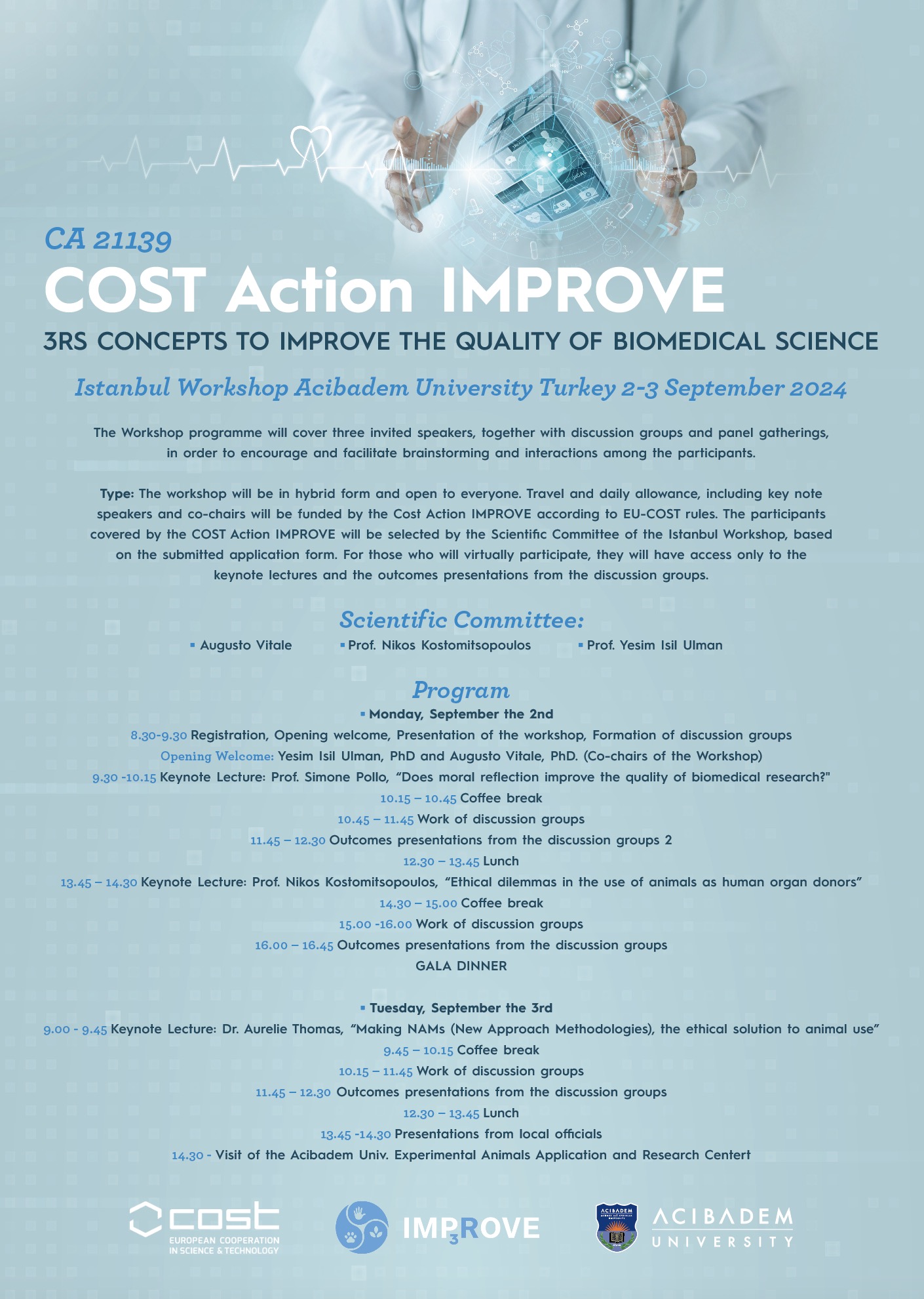 Acıbadem Üniversitesi, Tıp Fakültesi ve Tıp Tarihi ve Etik Anabilim Dalı ve Sağlık Bilimleri Enstitüsü Biyoetik Yüksek Lisans Programı’ndan Prof. Dr. Yesim Işıl Ulman başkanlığında 2-3 Eylül 2024 tarihinde düzenlenen CA 21139 COST Action IMPROVE Ethics X-over Group Istanbul Çalıştayı'na ev sahipliği yaptı. Istanbul Çalıştayı’na biyomedikal bilimler, sağlık bilimleri, veteriner hekimlik, sosyal bilimler, felsefe biyoetik alanlarından kırk araştırmacı ve uzman katıldı. Ayrıca on katılımcı hybrid olarak bilimsel oturumları uzaktan katıldılar.