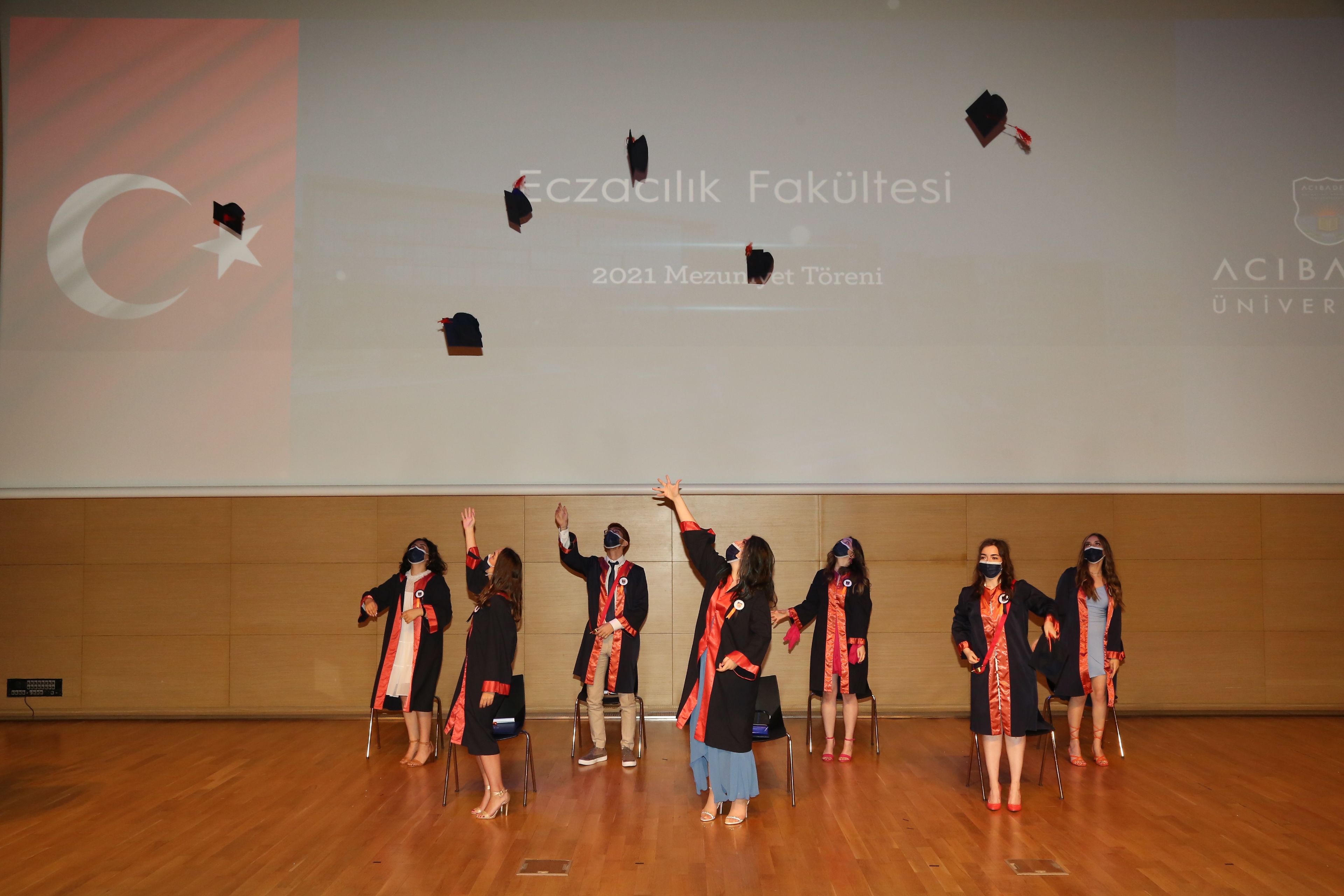 Eczacılık Fakültesi Mezuniyet Töreni 30 Temmuz 2021 tarihinde üniversitemizde gerçekleşti.Üniversitemiz Eczacılık Fakültesi Dekanı Prof. Dr. Mert Ülgen’in açılış konuşması ile başlayan törende, Eczacılık Fakültesi birincisi Buse Ögel de fakülteyi temsilen konuşmasını yaptı.Törende, fakülte birincisi Buse Ögel’e başarı beratı Mütevelli Heyeti Üyesi ve Kerem Aydınlar Vakfı Başkanımız Seher Aydınlar, fakülte ikincisi Elif Begüm Yıldırım ve fakülte üçüncüsü İrem Bahçıvan’a başarı beratları ise Rektörümüz Prof. Dr. Ahmet Şahin tarafından takdim edildi.Dekanımız, tüm mezunlarımıza temsili diplomalarını teslim etti. Ardından meslek andının okunması ve kep atma ile tören tamamlandı.