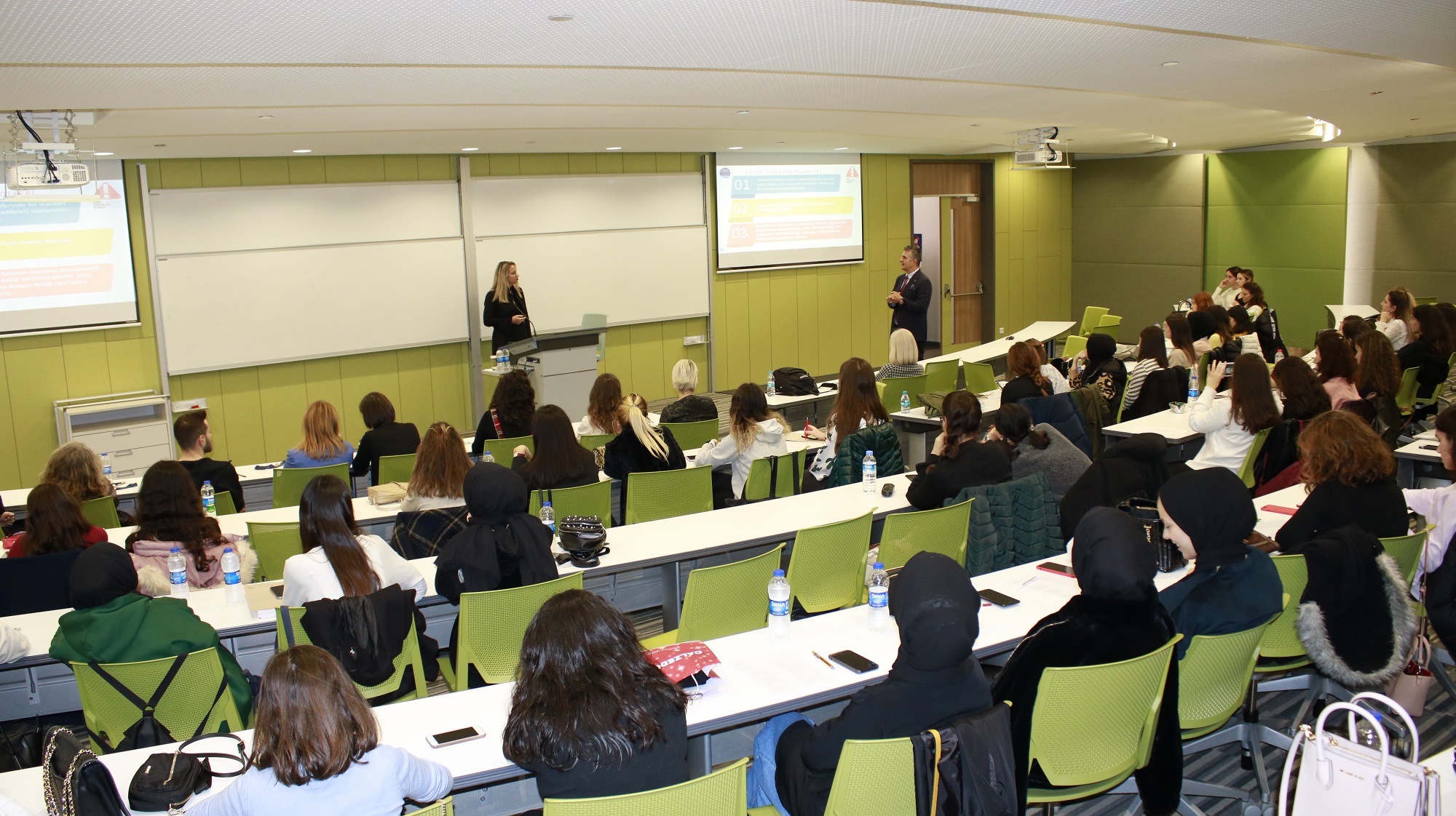 Beslenme ve Diyetetik Kulübümüz tarafından düzenlenen “Gıda Katkı Maddeleri ve Risk İletişimi” sempozyumu 29 Kasım 2019 tarihinde gerçekleşti.Beslenme ve Diyetetik Kulübümüzün gıda katkı maddelerinin standartlarını ve işlem basamakları anlatmak ve bu konu hakkındaki gündemdeki sorulara yanıt bulmak amacıyla düzenlediği etkinlikte Gıda Katkı Maddeleri Nelerdir? Gıda Katkı Maddeleri Üretim ve Denetleme Basamakları, Gıda Katkı Maddeleri Hakkında Doğru Bilinen Yanlışlar başlıkları konuşuldu.Sempozyumda Sağlık Bilimleri Fakültesi Dekanımız Prof. Dr. Murat Baş ve Gazi Üniversitesi Eczacılık Fakültesi Farmasötik Toksikoloji Anabilim Dalı Öğretim Üyesi Prof. Dr. Bensu Karahalil konuşmacı olarak yer aldı. Sempozyumda gıda katkı maddeleri için belirlenmiş kalite standartları ve denetleme, işlem basamakları hakkında bilgiler verildi. Sempozyum sırasında yapılan sunumlarla beraber doğru bilinen yanlışlar konuşuldu. İnteraktif şekilde geçen etkinlikte katılımcıların soruları da cevaplandırıldı.