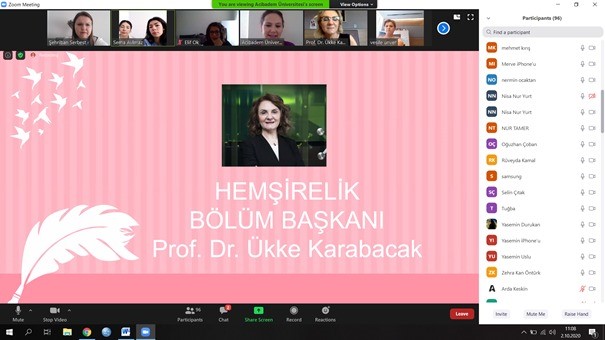 2020-2021 Eğitim Öğretim Yılı Hemşirelik Bölümüne yeni başlayan öğrencilere bölümü tanıtmak ve öğretim elemanlarını tanıştırmak amacıyla zoom programı üzerinden çevrim içi “Hemşirelik Bölümü Birinci Sınıf Oryantasyon Programı” 2 Ekim 2020 tarihinde gerçekleştirildi. Program Hemşirelik Bölüm Başkanı Prof. Dr. Ükke Karabacak’ın öğrencilere hoş geldin mesajı ile başladı.Ardından birinci sınıf danışmanı Dr. Öğr. Üyesi Vildan Kocatepe hemşirelik bölümü hakkında bilgi verdi. Birinci sınıf koordinatörü Uzm. Hem. Şehriban Serbest bölüm öğretim elemanlarını öğrencilere tanıttı ve öğretim elemanları üniversite hayatı, hemşirelik bölümü ve mesleğe dair mesajlarını verdi. Dr. Öğr. Üyesi Vildan Kocatepe’nin güz döneminde yürütülecek çevrim içi program hakkında bilgi vermesinin ardından üst sınıfların öğrenci temsilcileri çevrim içi eğitim hakkında deneyimlerini paylaştı. Oryantasyon programı Uzm. Hem. Nermin Ocaktan tarafından birinci sınıf öğrencilerinin yeni geldiği üniversite ortamına uyum sağlaması ve içinde bulunulan sistemi daha iyi anlaması amacıyla yürütülen Akran Destek Programı hakkında bilgi vermesi ile tamamlandı.